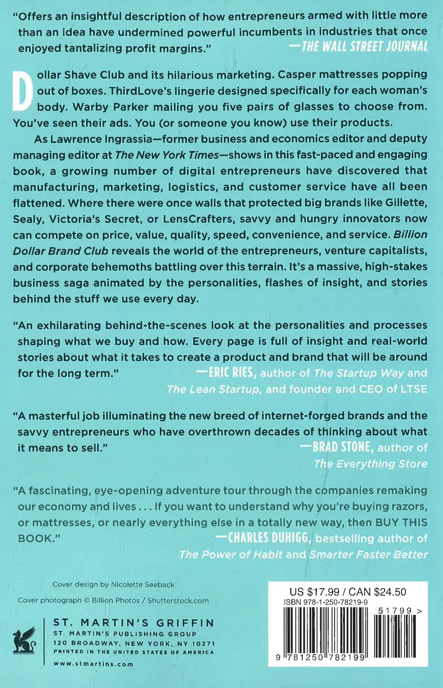 Dollar Shave Club and its hilarious marketing. Casper mattresses popping out of a box. Third Love's lingerie designed specifically for each woman's body. Warby Parker mailing you five pairs of glasses to choose from. You've seen their ads. You (or someone you know) use their products. Each may appear, in isolation, as a rare David with the bravado to confront a Goliath, but taken together they represent a seismic shift in a business model that has lasted more than a century. As Lawrence Ingrassia - former business and economics editor and deputy managing editor at the New York Times - shows in this timely and eye-opening book, a growing number of digital entrepreneurs have found new and creative ways to crack the code on the bonanza of physical goods that move through our lives every day. They have discovered that manufacturing, marketing, logistics, and customer service have all been flattened - where there were once walls that protected big brands like Gillette, Sealy, Victoria's Secret, or Lenscrafters, savvy and hungry innovators now can compete on price, value, quality, speed, convenience, and service. Billion Dollar Brand Club reveals the world of the entrepreneurs, venture capitalists, and corporate behemoths battling over this terrain. And what fun it is. It's a massive, high-stakes business saga animated by the personalities, flashes of insight, and stories behind the stuff we use every day.