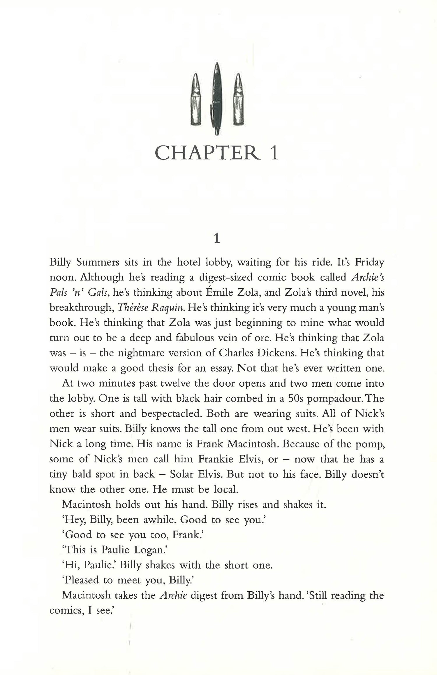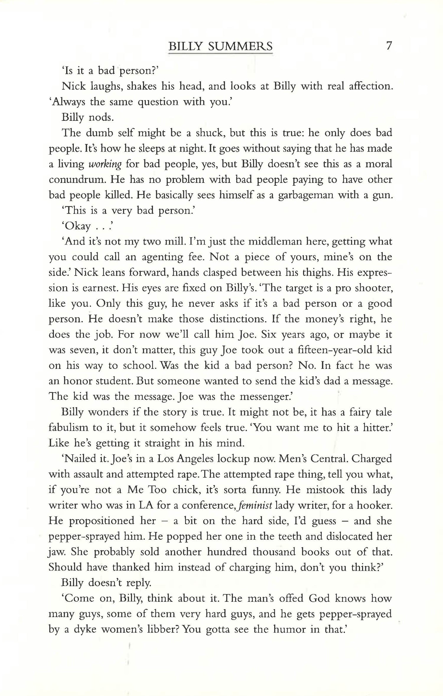 Billy Summers is a man in a room with a gun. He's a killer for hire and the best in the business. But he'll do the job only if the target is a truly bad guy. And now Billy wants out. But first there is one last hit. Billy is among the best snipers in the world, a decorated Iraq war vet, a Houdini when it comes to vanishing after the job is done. So what could possibly go wrong?