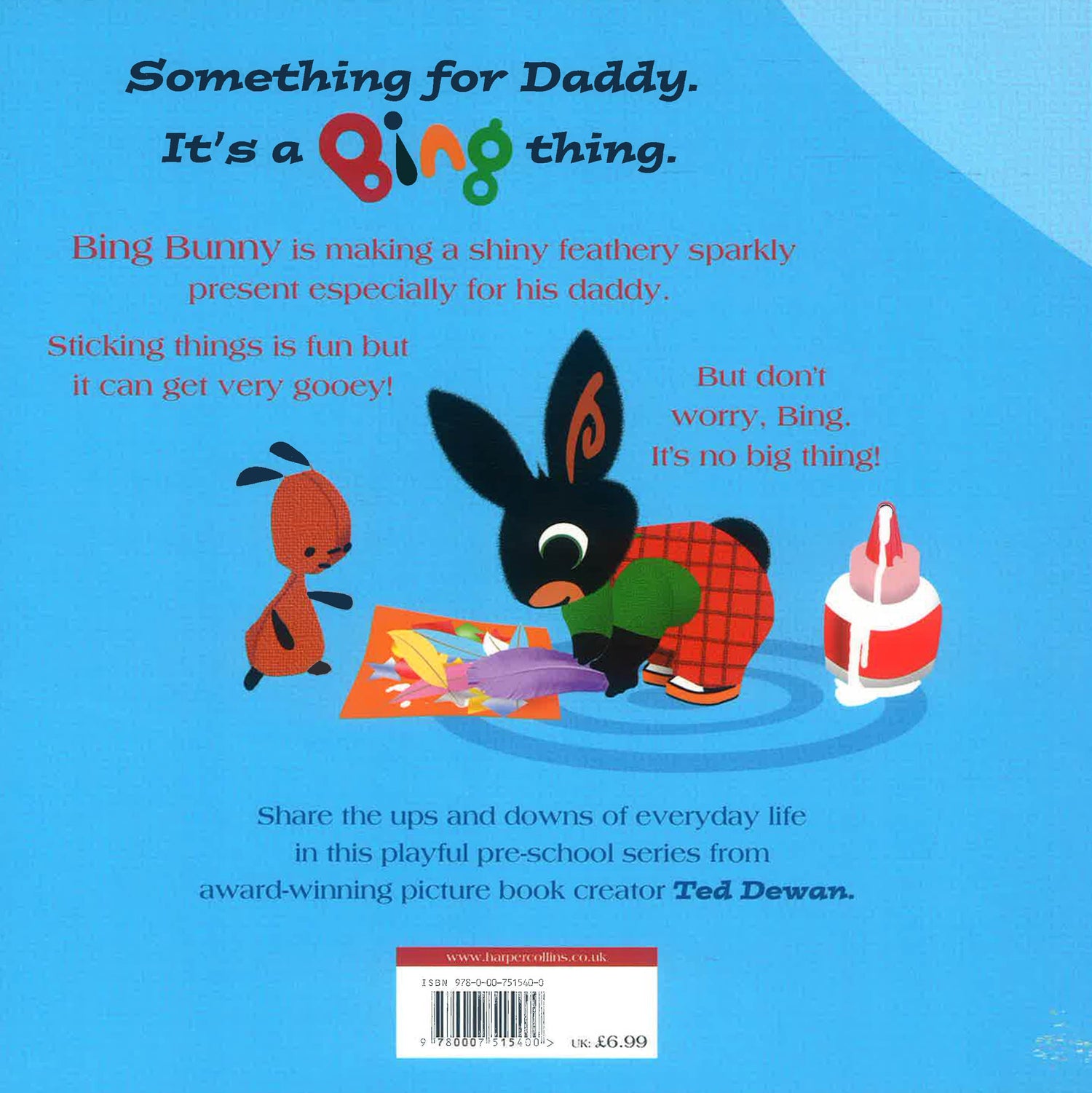 Bing is making something for Daddy. He loves his daddy as much as he loves making shiny, feathery, sparkly things. But Bing will have to be very careful with that big bottle of goo…