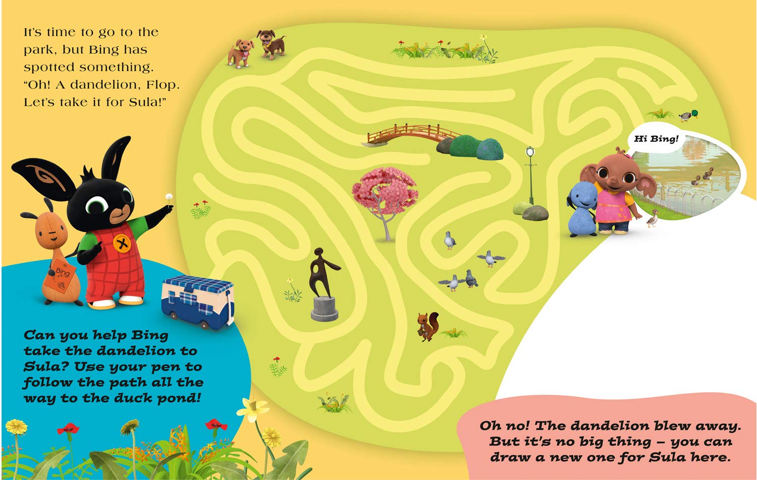Join Bing and Flop in the park for lots of fun puzzles with this wipe clean activity book – with special Bing pen for practising mark making and pen control.