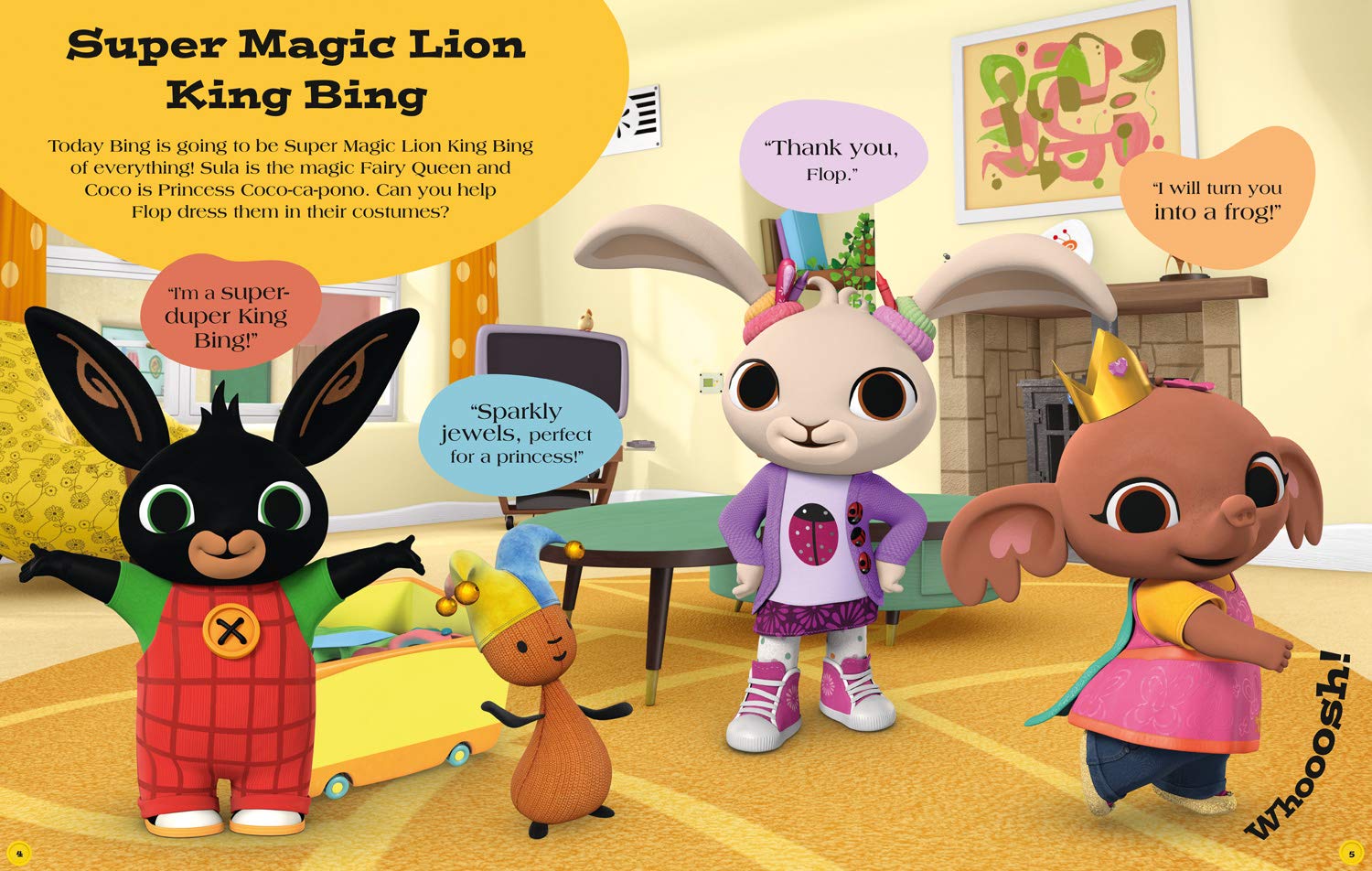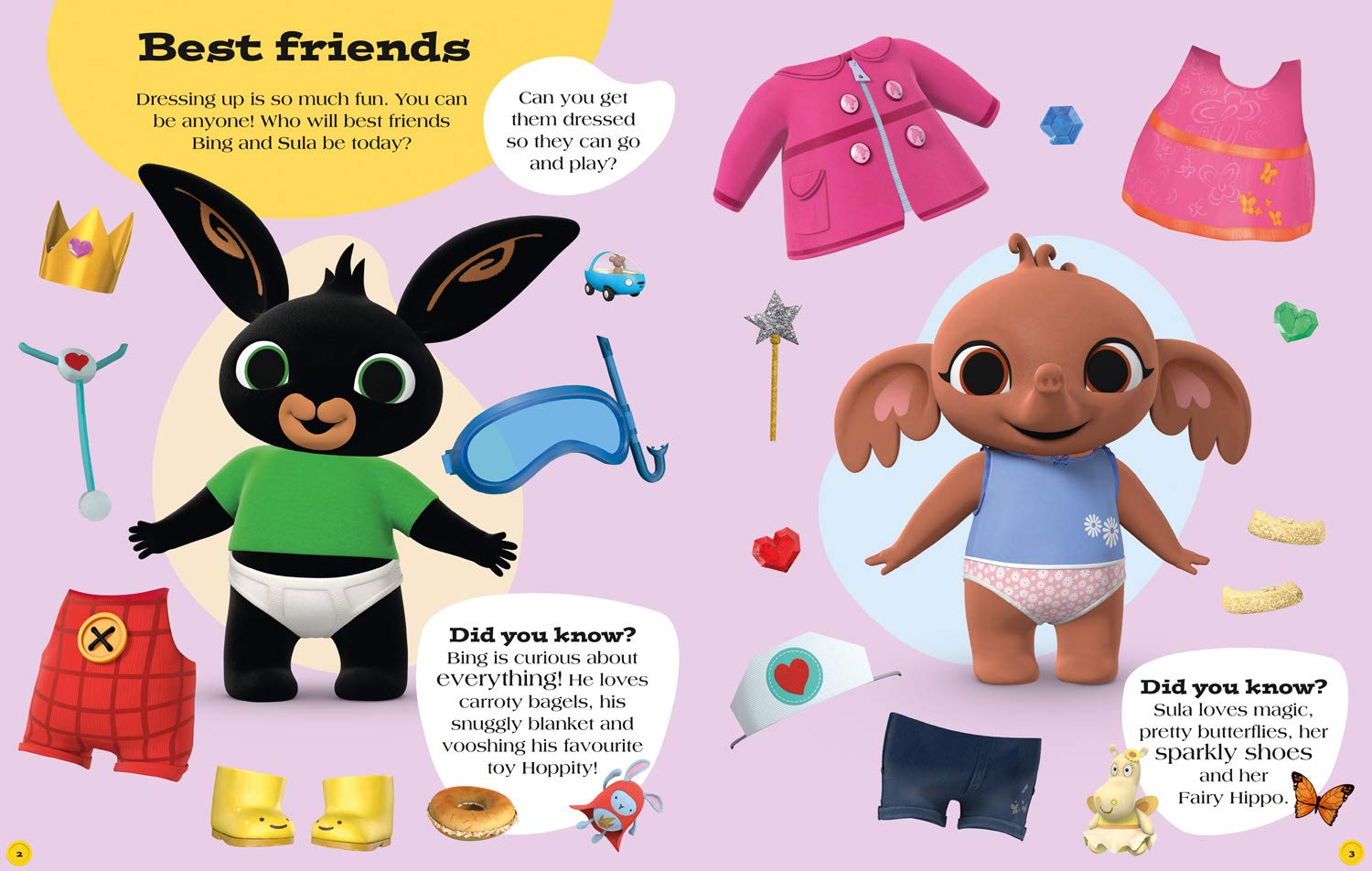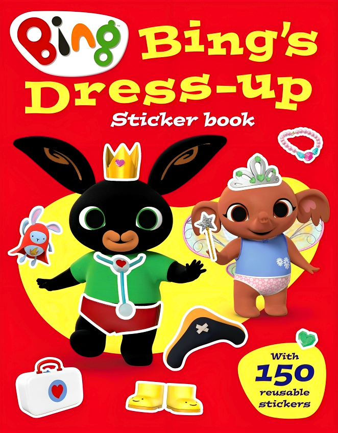 Who will Bing bunny and his friends dress up as today? You decide! Use the stickers to change Bing into King Bing of Everything, and his friends into fairy queens, princesses, pirates and nurses. Then peel off the stickers and start again!
