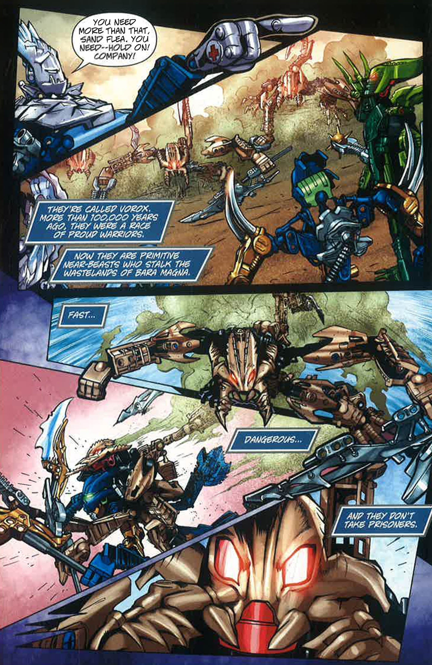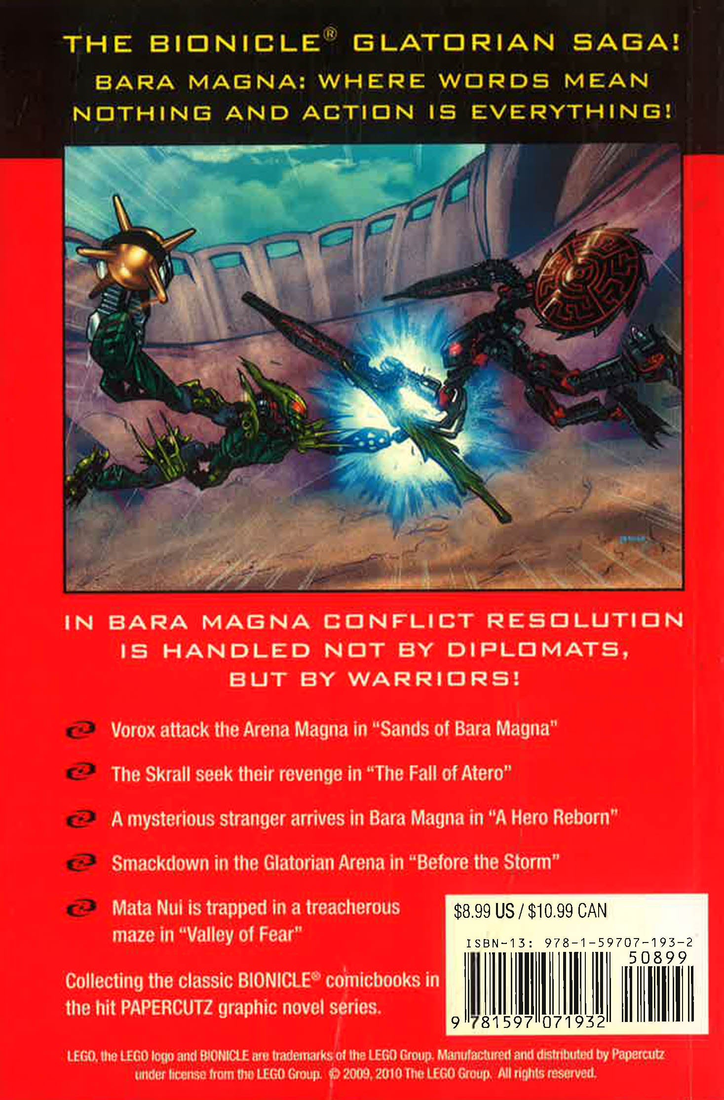 The BIONICLE Glatorian series begins in this graphic novel, exploring the world of Bara Magna, previously seen in BIONICLE Graphic Novel #8 “Legends of Bara Magna”. In this harsh world that contains both deserts and snowy, mountain-like terrain, Glatorian matches much like the gladiator matches of ancient Rome are used to decide conflicts between rival tribes or enemies. The world is overrun by the dangerous Skrall, who decimate everything in their path. A world with rules and enemies unlike any of the planets seen in previous BIONICLE graphic novels, “The Fall of Atero” presents a new setting with an all-new dynamic already a hit with fans.