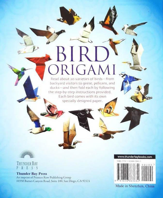 Birds of a feather flock together in Bird Origami! Bird Origami will have you folding paper like a duck takes to water. You won't have to wing it when you follow the detailed, illustrated instructions to flush out twenty popular species, including mallards, hummingbirds, sparrows, seagulls, and finches. Specially designed paper makes these beauties realistic! Field guide information introduces each species, from crows to cardinals, from pelicans to geese. The bluebird of happiness will be singing from your fingers in no time!