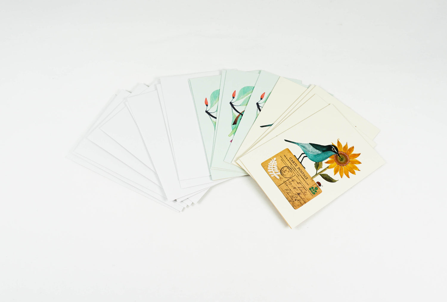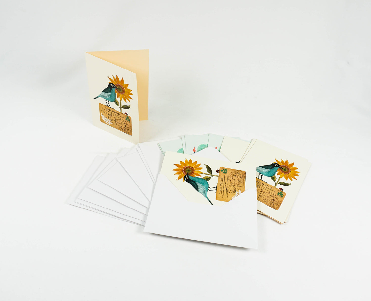 Express your sentiment and your love of art with colorful note cards. Whether your message is joyful, congratulatory, sympathetic, or celebratory, convey your feelings with a handwritten note. The beautiful shapes and colors of birds and flowers by artist Gennine make this 10-card set of blank note cards perfect for expressing a whole range of sentiments, from sympathy to congratulations or gratitude. Two of the artist's images are included in the set.