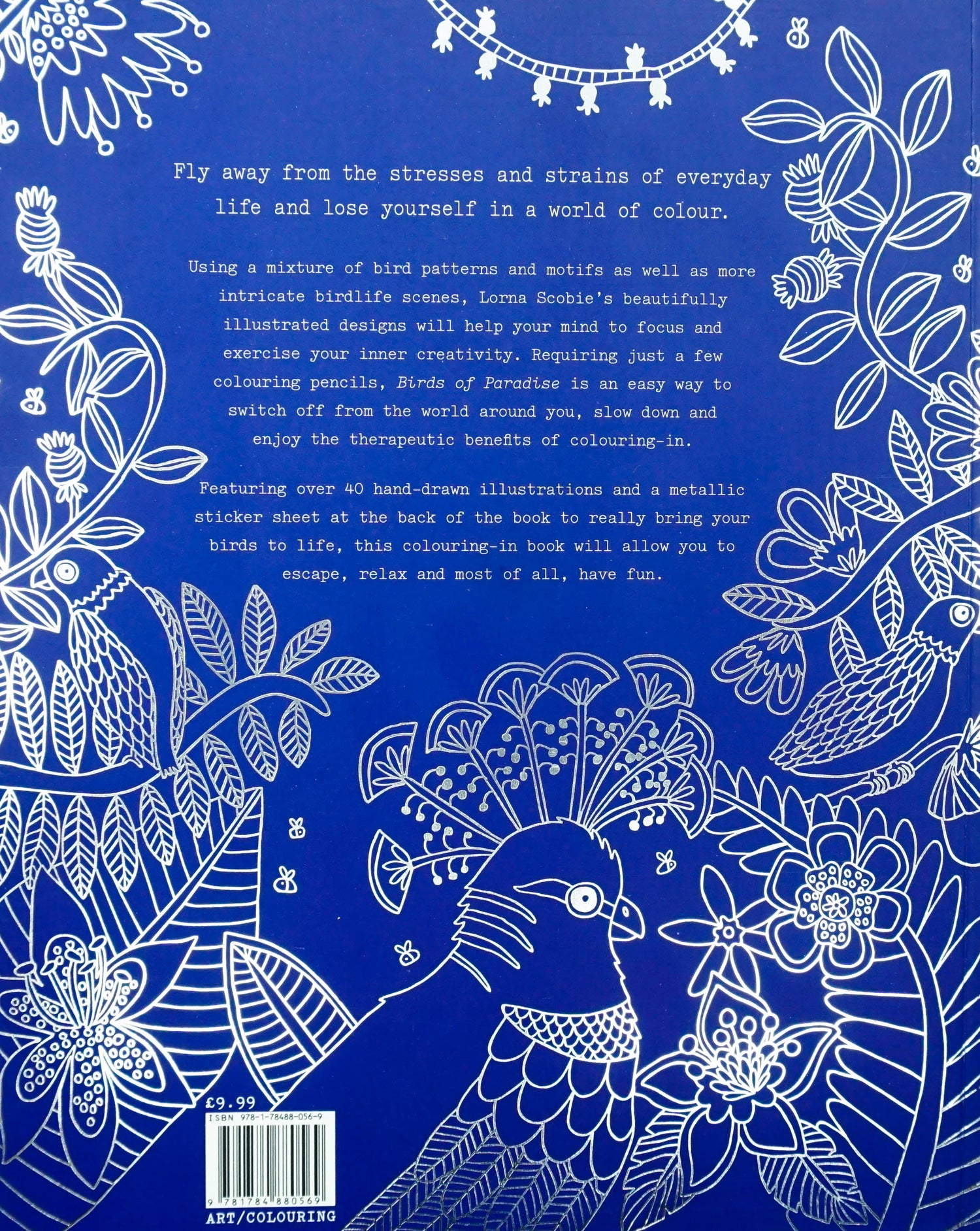 Fly away from the stresses and strains of everyday life and lose yourself in the paradisiacal world of colour. Using a mixture of repeat bird patterns and motifs as well as more intricate birdlife scenes, these beautifully illustrated designs will help your mind to focus and to exercise your inner creativity. Free from competitive pressure, Birds of Paradise is an easy way to switch-off from the world around you, slow down and enjoy the therapeutic benefits of colouring-in. With over 50 hand-drawn illustrations and a metallic sticker sheet at the back of the book to really bring your birds to life, this is the only colouring-in book you'll need to escape, relax and most of all, have fun.