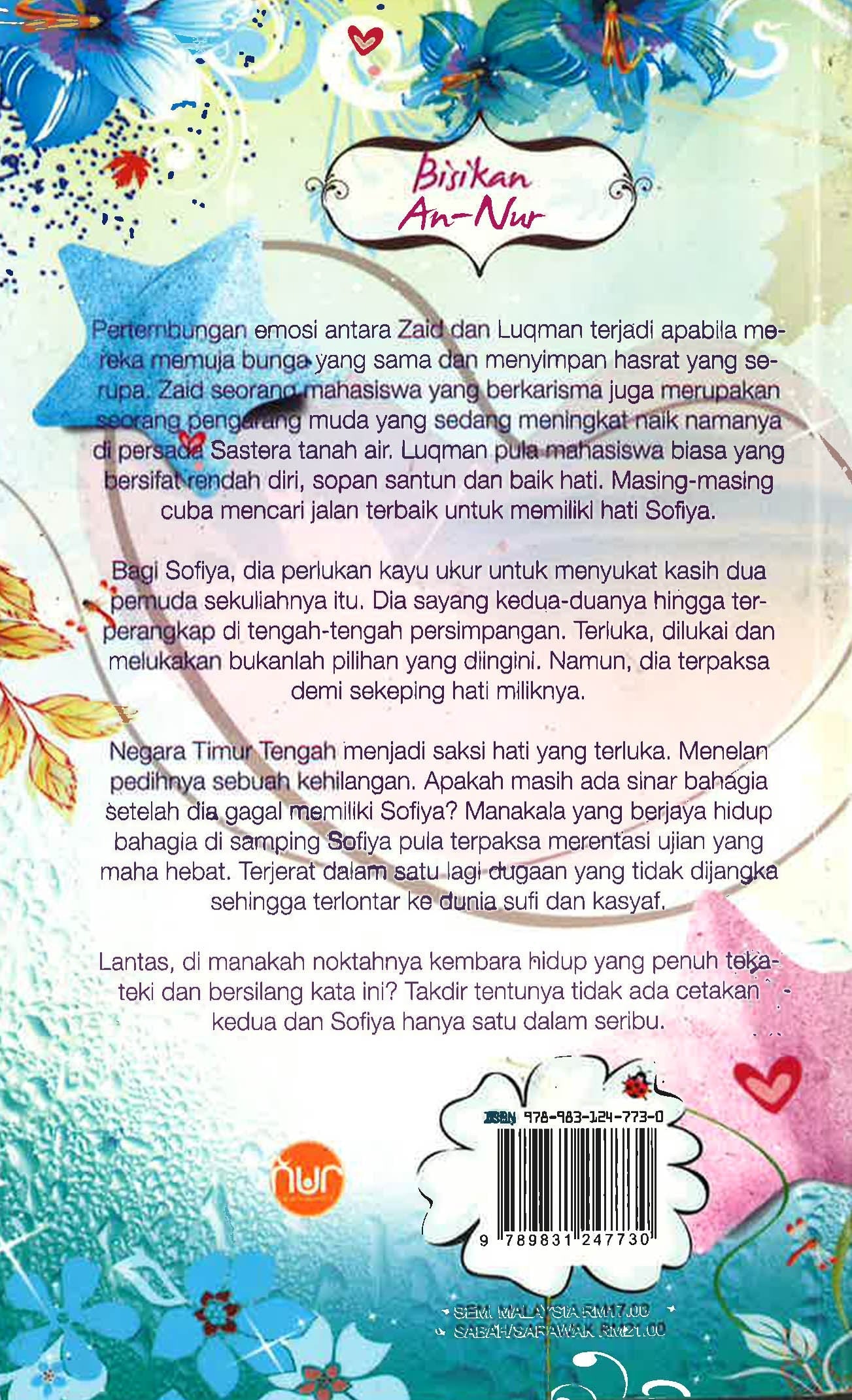 Lantas, di manakah noktahnya kembara hidup yang penuh teka teki dan bersilang kata ini? Takdir tentunya tidak ada cetakan kedua dan Sofiya hanya satu dalam seribu.