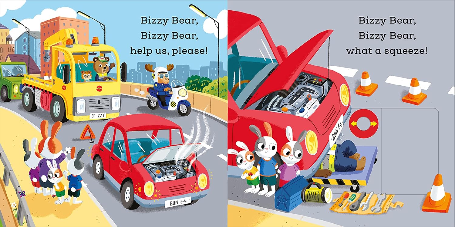 Five easy-to-use sliders, a rhyming story and lots to spot and say in this series of bright, interactive board books for toddlers! When the rabbit family's car breaks down, who do they call? Bizzy Bear, of course! Little readers will love to use the chunky mechanisms to help him drive his breakdown truck, check the car's engine, and get the family safely home! An engaging little story with loads of details to spot and chat about. This story needs YOU! By pushing, pulling and turning the mechanisms, little hands can move the story onto the next scene and bring the rhyming text to life! The high level of interaction builds confidence and engagement with books, which is a key stepping-stone to reading for toddlers. Illustrated by multi-award-winning Benji Davies, illustrator of The Storm Whale, and Grandad's Island Collect the whole series; other title available include: Bizzy Bear: Farmyard Fun, Bizzy Bear: Fire Rescue, Bizzy Bear: Racing Driver and lots, lots more!