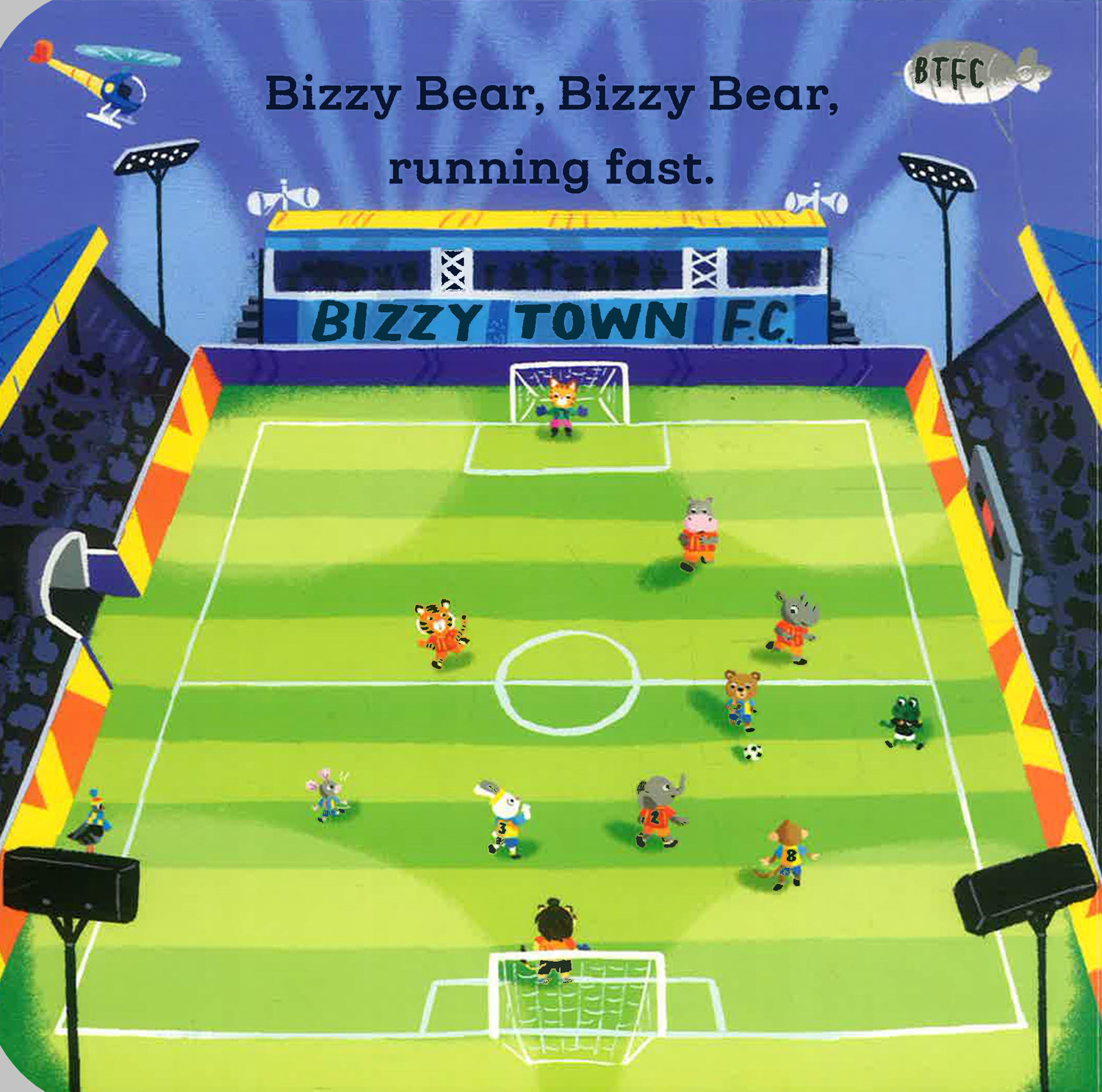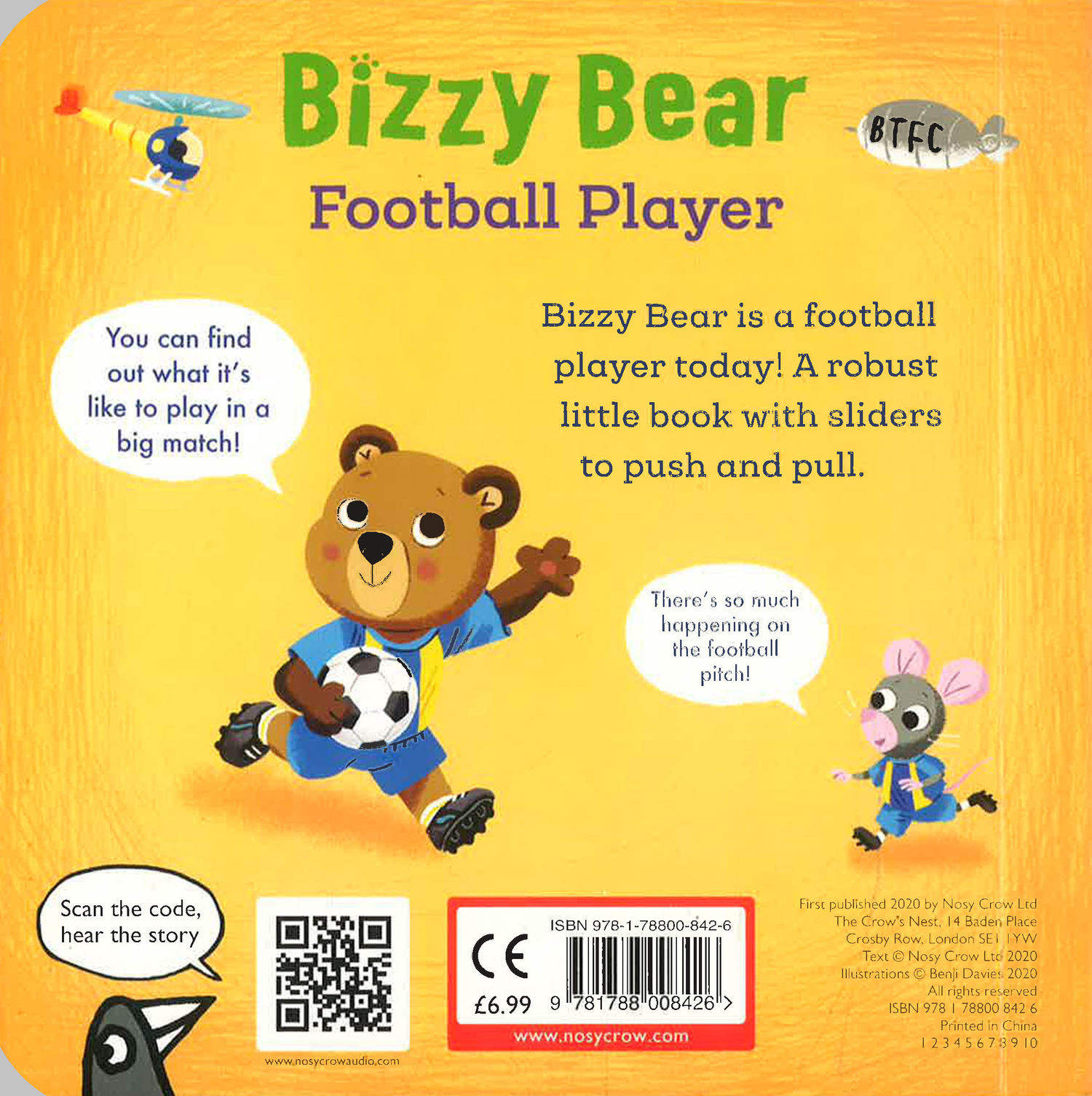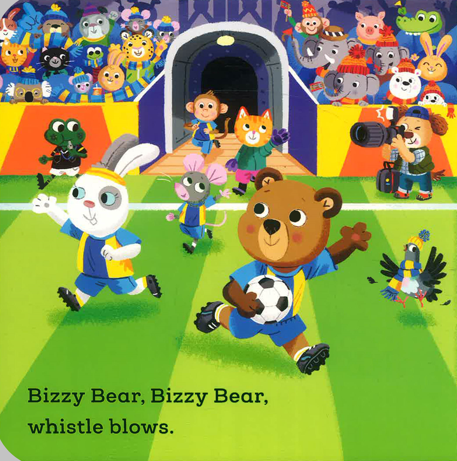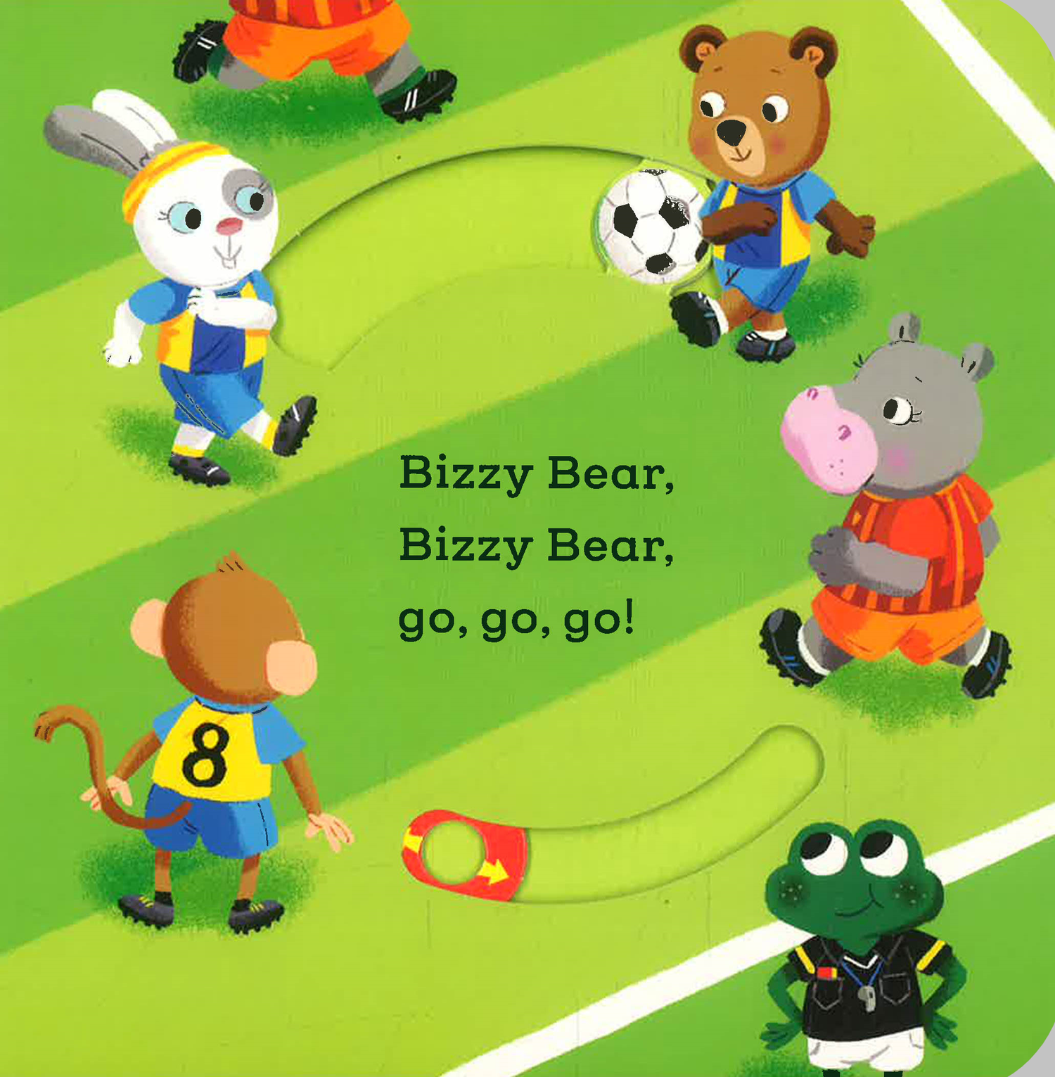 Five easy to move sliders, a rhyming story and lots to spot and say in this series of bright, interactive board books for toddlers! Bizzy Bear is a football player today and it's time for the big game! Help him make passes to his teammates and score goals! A funny little story with loads of details to spot and chat about. This story needs YOU! By pushing, pulling and turning the mechanisms, little hands can move the story onto the next scene and bring the rhyming text to life! The high level of interaction builds confidence and engagement with books, which is a key stepping-stone to reading for toddlers. Illustrated by multi-award-winning Benji Davies, illustrator of The Storm Whale, and Grandad's Island Collect the whole series; other title available include: Bizzy Bear: Zoo Ranger, Bizzy Bear: Fire Rescue, Bizzy Bear: Racing Car and lots, lots more!
