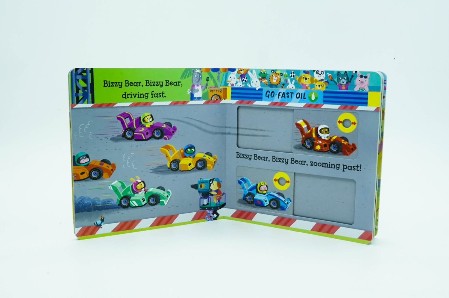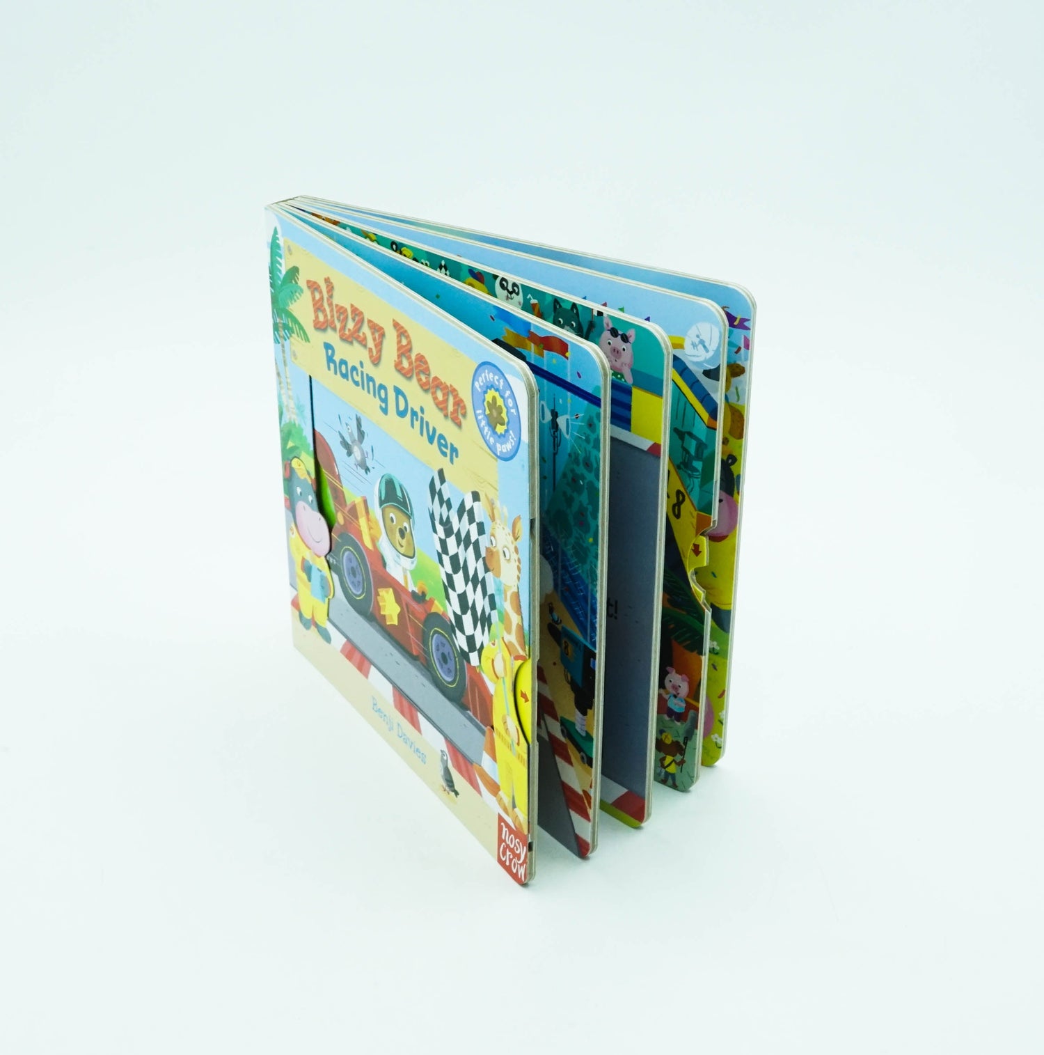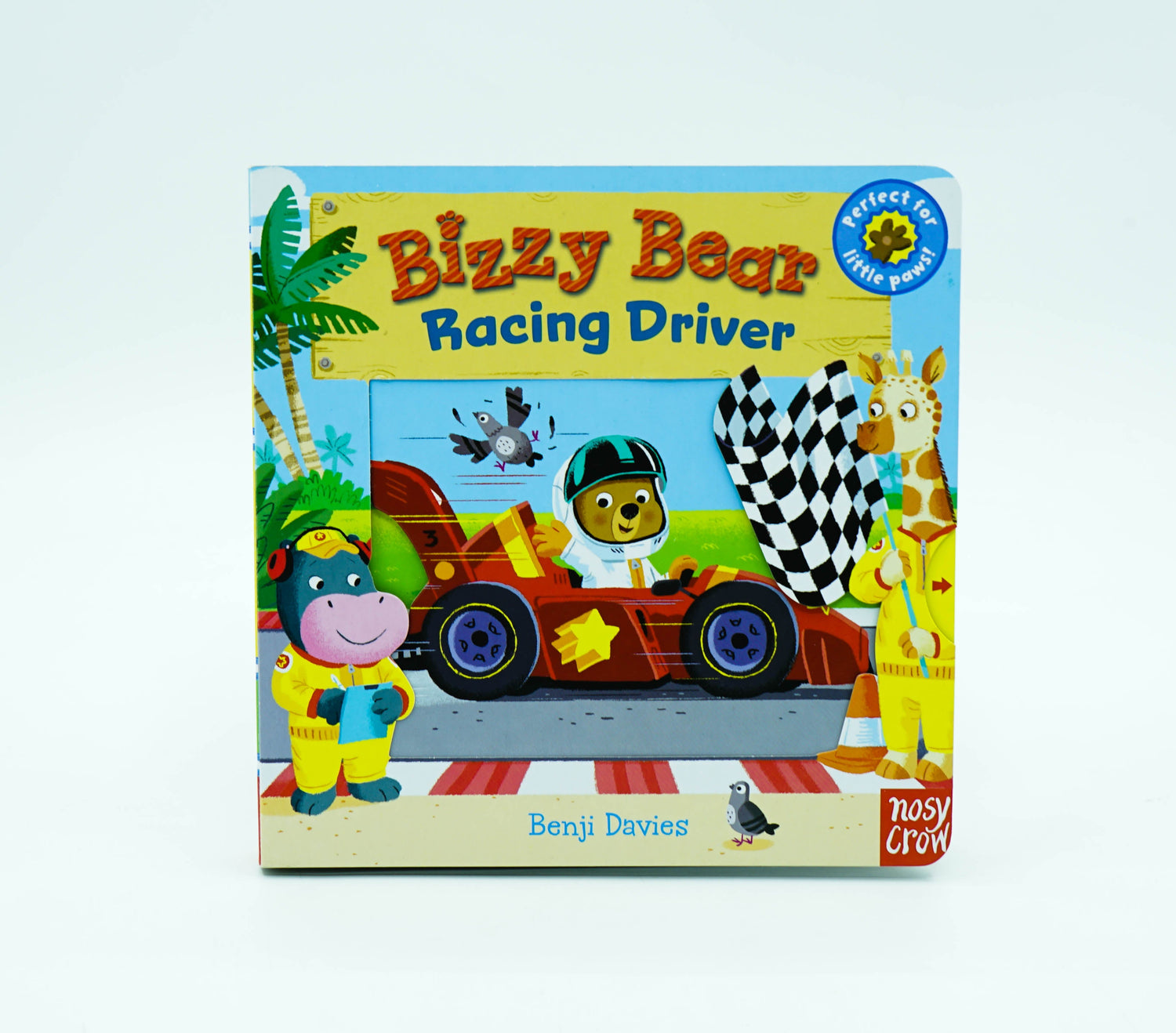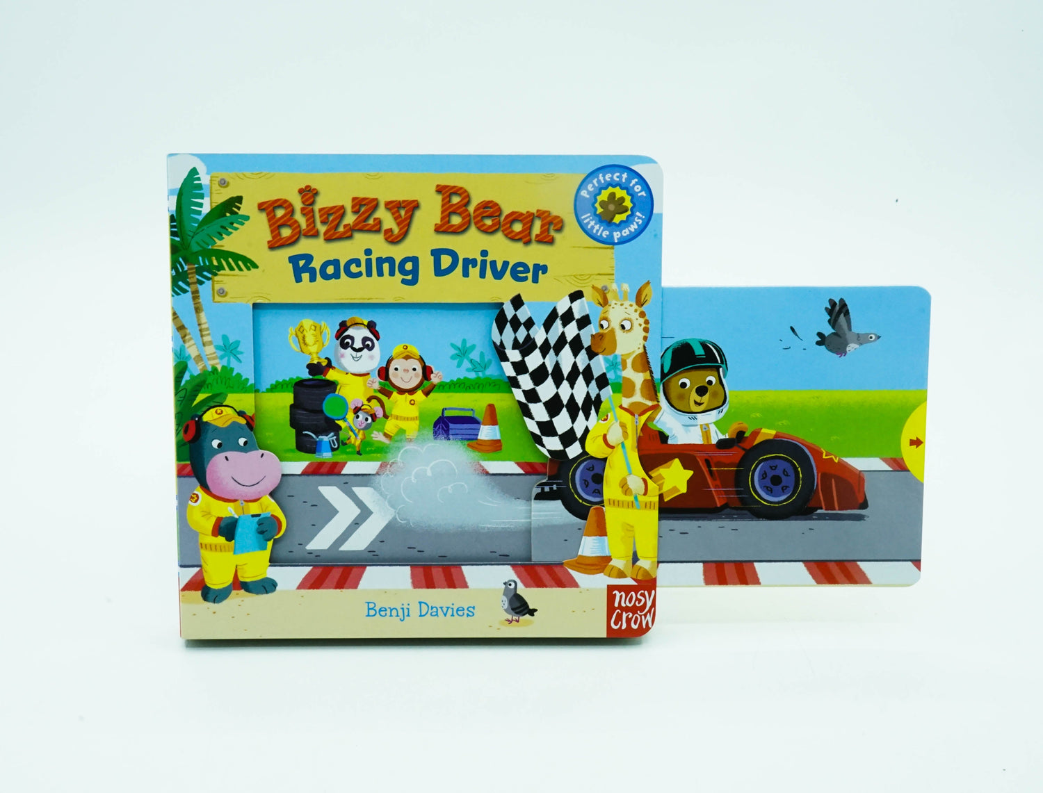 Five easy to move sliders, a rhyming story and lots to spot and say in this series of bright, interactive board books for toddlers! Today, Bizzy Bear is taking part in a big race - ready, steady, go! Turn the lights on to signal the start, help him speed along in his racing car and zoom around the track. Then lift the flag as he crosses the finish line! But will he get there first? A funny little story with loads of details to spot and chat about. This story needs YOU! By pushing, pulling and turning the mechanisms, little hands can move the story onto the next scene and bring the rhyming text to life! The high level of interaction builds confidence and engagement with books, which is a key stepping-stone to reading for toddlers. Illustrated by multi-award-winning Benji Davies, illustrator of The Storm Whale, and Grandad's Island Collect the whole series; other title available include: Bizzy Bear: Farmyard Fun, Bizzy Bear: Fire Rescue, Bizzy Bear: Pirate Ship and lots, lots more!