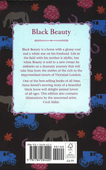 Black Beauty is a horse with a glossy coat and a white star on his forehead. Life in the field with his mother is idyllic, but when Beauty is sold to a new owner he embarks on a dramatic journey that will take him from the stables of the rich to the impoverished streets of Victorian London. One of the best-selling books of all time, Anna Sewell's moving story of a beautiful black horse will delight animal lovers of all ages. This edition contains illustrations by the renowned artist, Cecil Aldin.