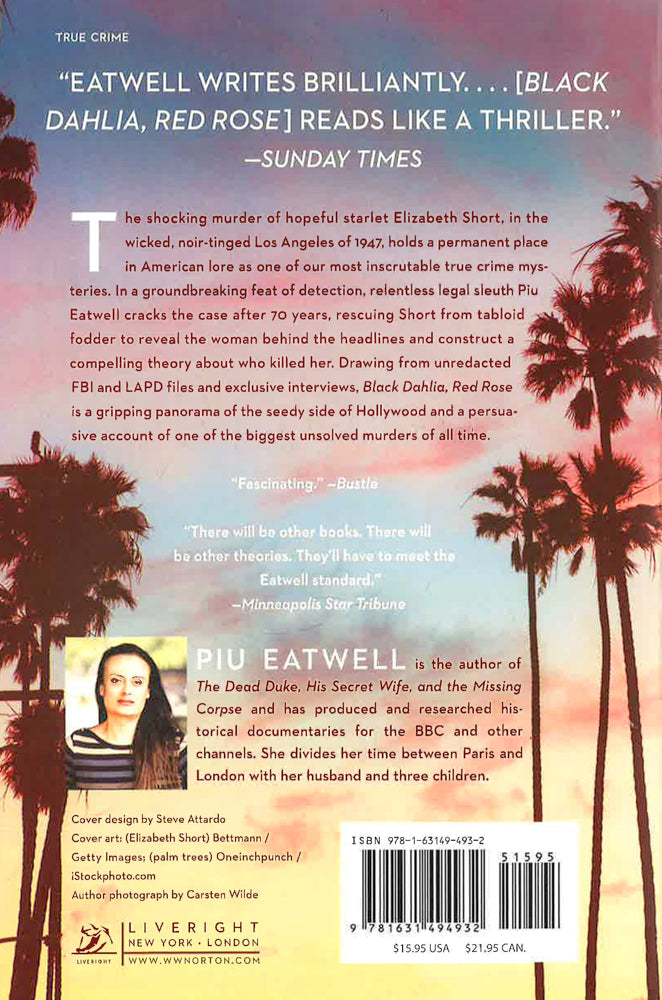 The gruesome 1947 murder of hopeful starlet Elizabeth Short holds a permanent place in American lore as one of our most inscrutable true-crime mysteries. In a groundbreaking feat of detection hailed as "extensive" and "convincing" (Bustle), skilled legal sleuth Piu Eatwell cracks the case after seventy years, rescuing Short from tabloid fodder to reveal the woman behind the headlines. Drawing on recently unredacted FBI and LAPD files and exclusive interviews, Black Dahlia, Red Rose is a gripping panorama of noir-tinged 1940s Hollywood and a definitive account of one of the biggest unsolved murders of American legal history.