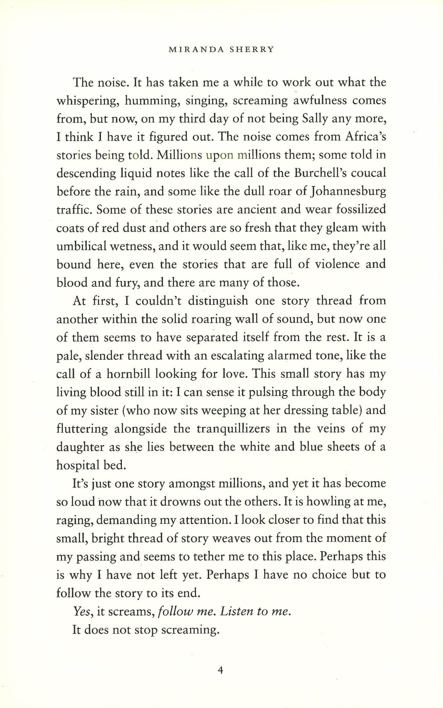 Until the day of the attack, Sally and her teenage daughter Gigi lived a charmed bohemian life in the African bush. Now Sally is dead and Gigi has been sent to live with her aunt and uncle in the suburbs.