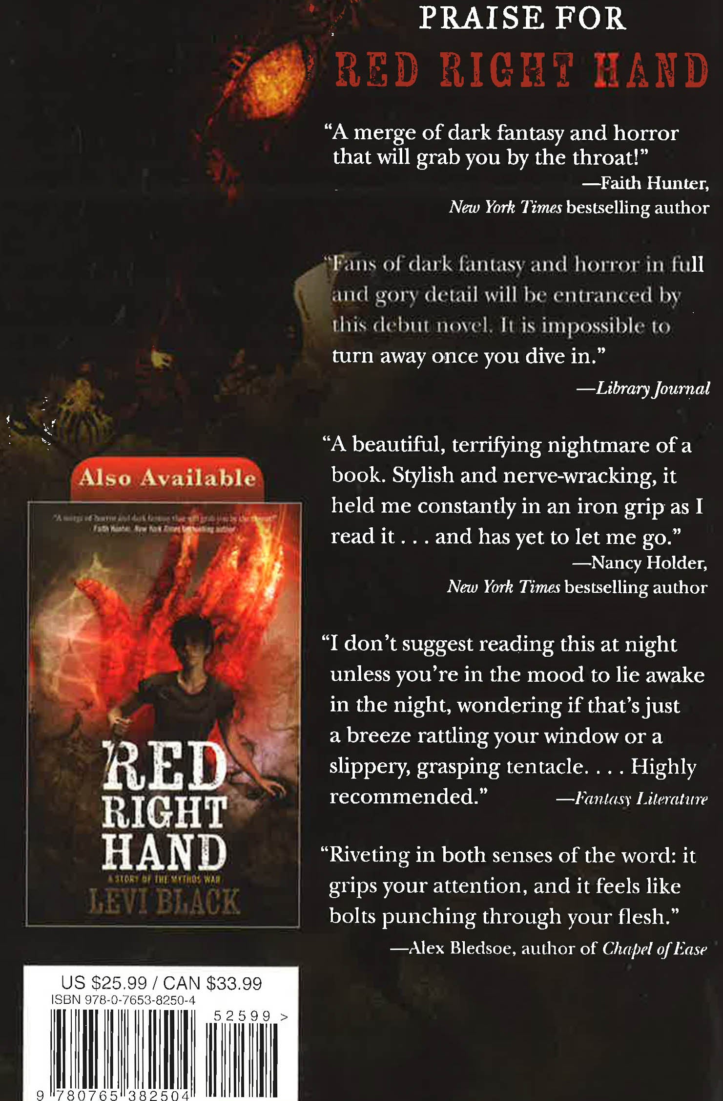 In Red Right Hand, Charlie Tristan Moore was thrust into a nightmarish world of lurking Lovecraftian horrors when The Man In Black, a diabolical Elder God, chose her as his unwilling Acolyte. Discovering her own power, Charlie ultimately defied The Man In Black, but at a cost.Now armed with a magic coat made from the skin of a flayed angel, Charlie is out to destroy The Man In Black and save her boyfriend Daniel - and she doesn’t care how many bloodthirsty gods and monsters get in her way . . .