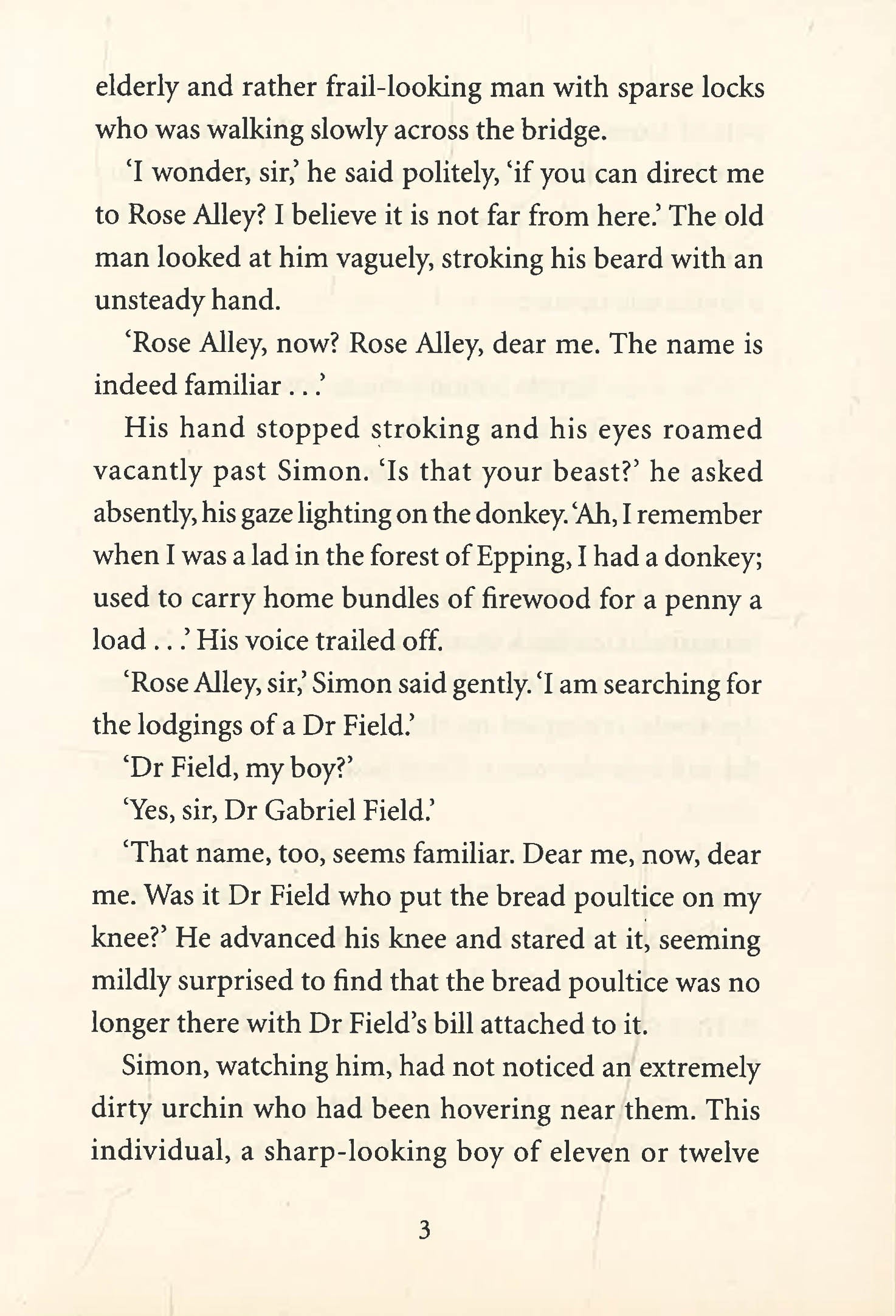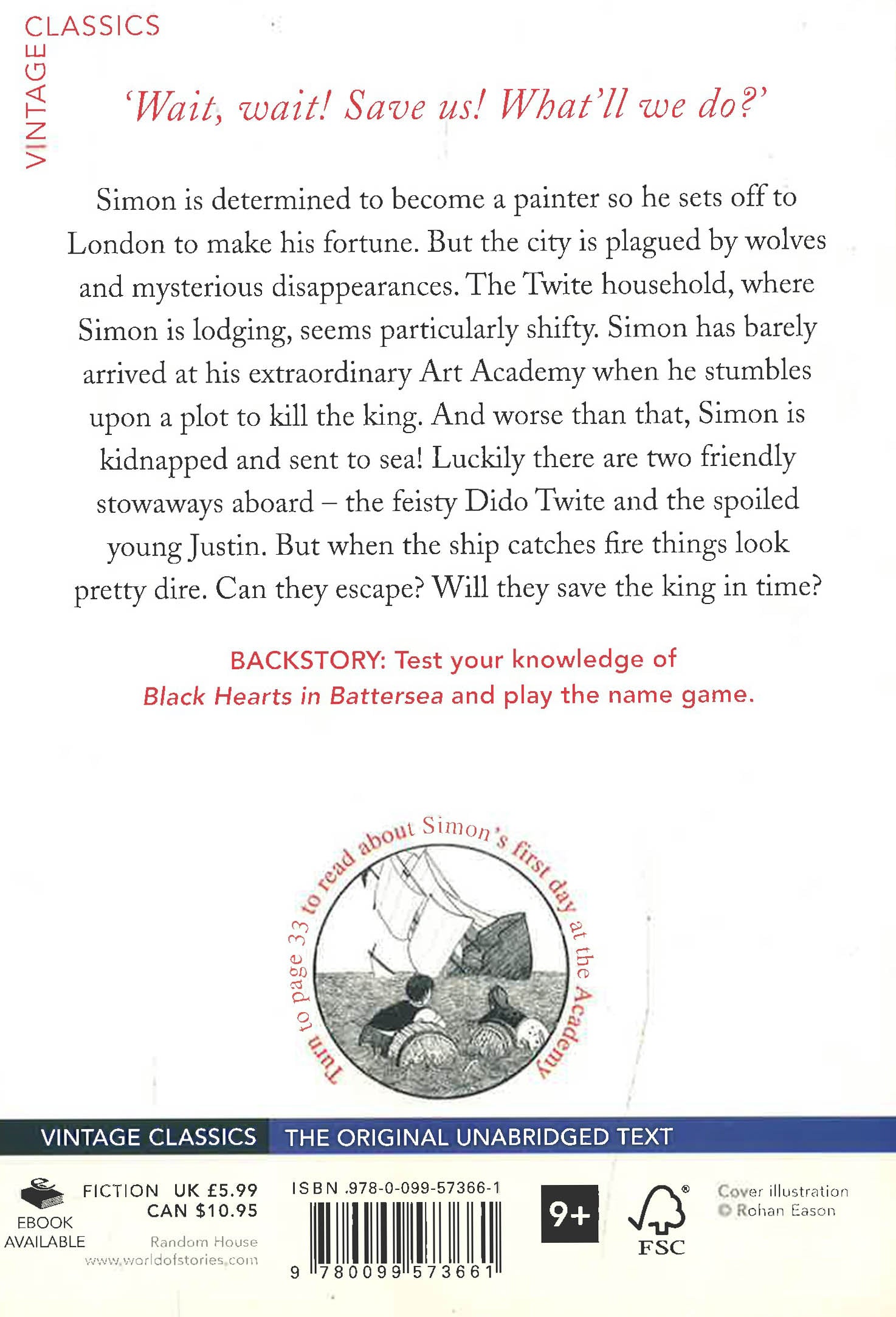 Simon is determined to become a painter when he grows up so he sets off to London to make his fortune. But the city is plagued by wolves and mysterious disappearances. The Twite household, where Simon is lodging, seems particularly shifty. Before he even gets a chance to open his glistening new paints Simon stumbles right into the centre of a plot to kill the King. And worse than that Simon is kidnapped and sent to sea! Luckily there are two friendly stowaways aboard - the feisty Dido Twite and the spoiled young Justin. But when the ship catches fire things look pretty dire. Can they escape? Will they save the king in time?
