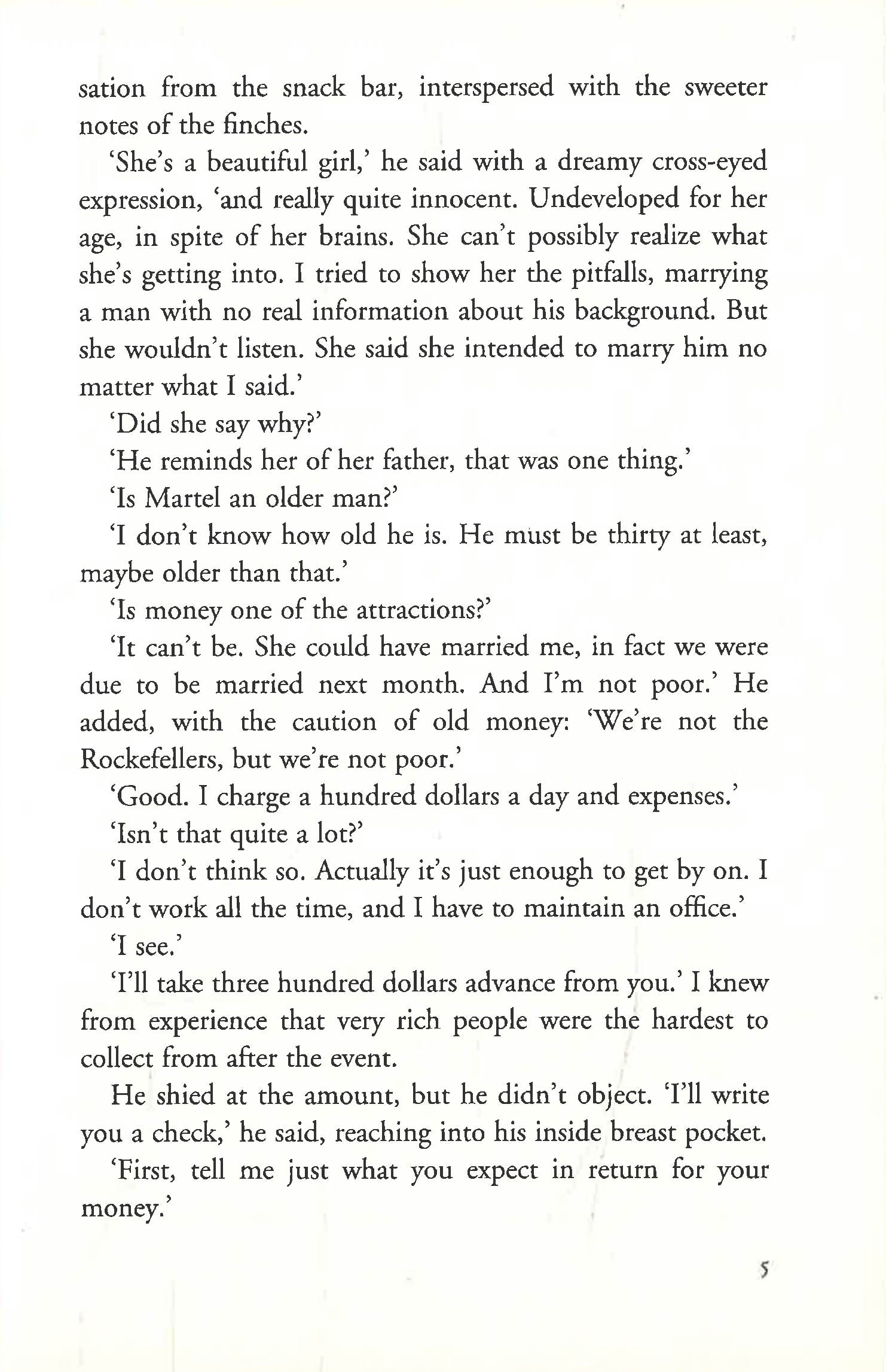 When Lew Archer is hired to find out the truth about a suspiciously suave Frenchman who has run off with his client's girlfriend, it looks like a simple enough case. But things start to look very different when Archer connects the elusive foreigner with a seven-year-old suicide and a mountain of gambling debts.
