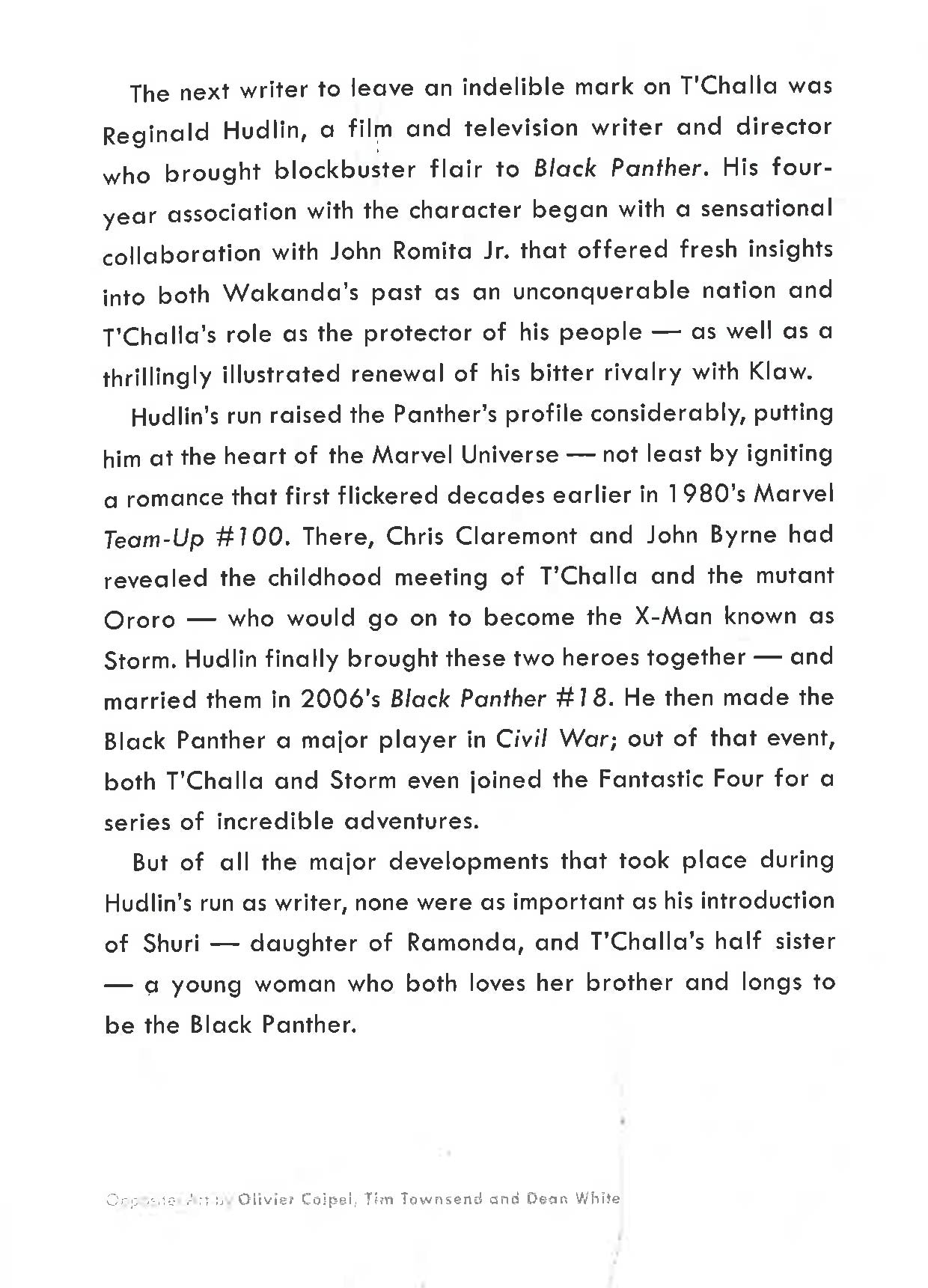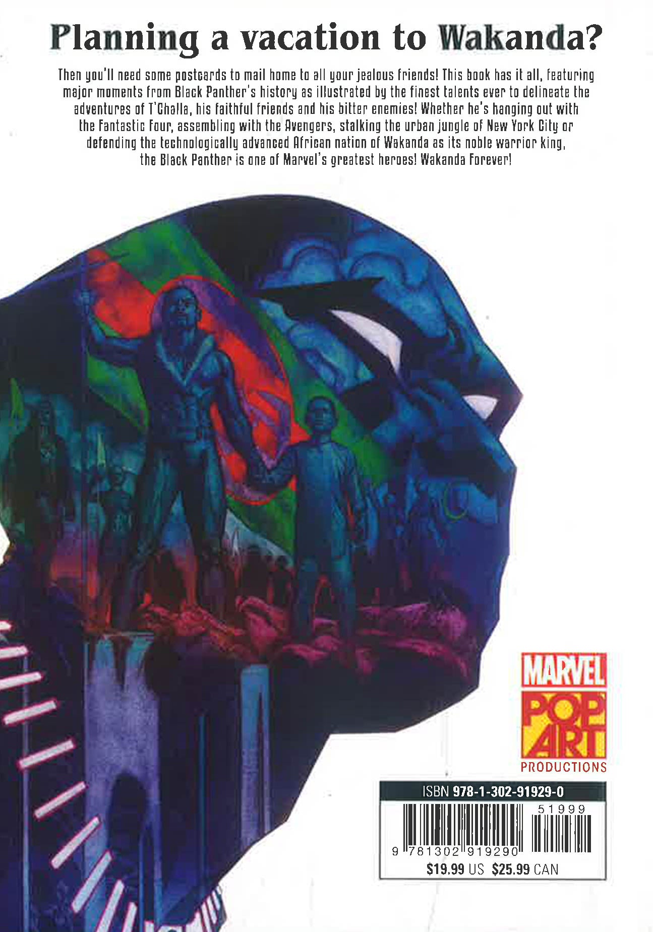 Planning a vacation to the technologically advanced African nation of Wakanda? Then you're going to need some postcards to mail home to all your jealous friends! This book has all the cards you'll ever need, featuring major moments from the history of the Black Panther -as illustrated by the finest talents to have ever delineated the adventures of T'Challa, his faithful friends and his bitter enemies! Whether he's hanging out with the Fantastic Four, serving alongside the Avengers, stalking the urban jungle of New York City or defending Wakanda as its noble warrior king, the Black Panther is one of Marvel's greatest heroes-and his costume is one of the coolest around! Especially when drawn by the many Marvel legends whose work awaits within! Wakanda Forever!