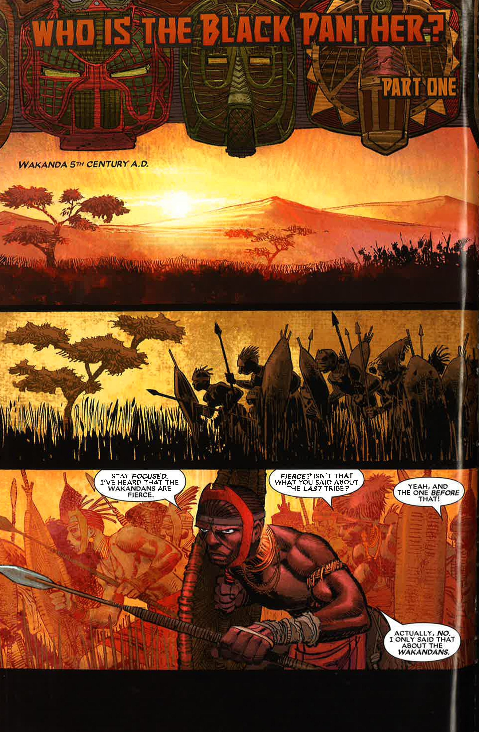 Deep in the heart of Africa is Wakanda, a technologically advanced civilization of great power and mystery. During the last ten centuries, as European colonial powers spread their guns, armies and undisputed domination throughout the continent, Wakanda has stood alone as an unconquerable land inhabited by undefeatable warriors. Governing this nation is a lineage of warrior kings possessing enhanced speed, strength and agility. Today, T'Challa is the latest in this famed family line, the great hero known worldwide as the Black Panther. Despite the futile defeats of the past, outsiders are once more assembling to invade Wakanda and plunder its riches.