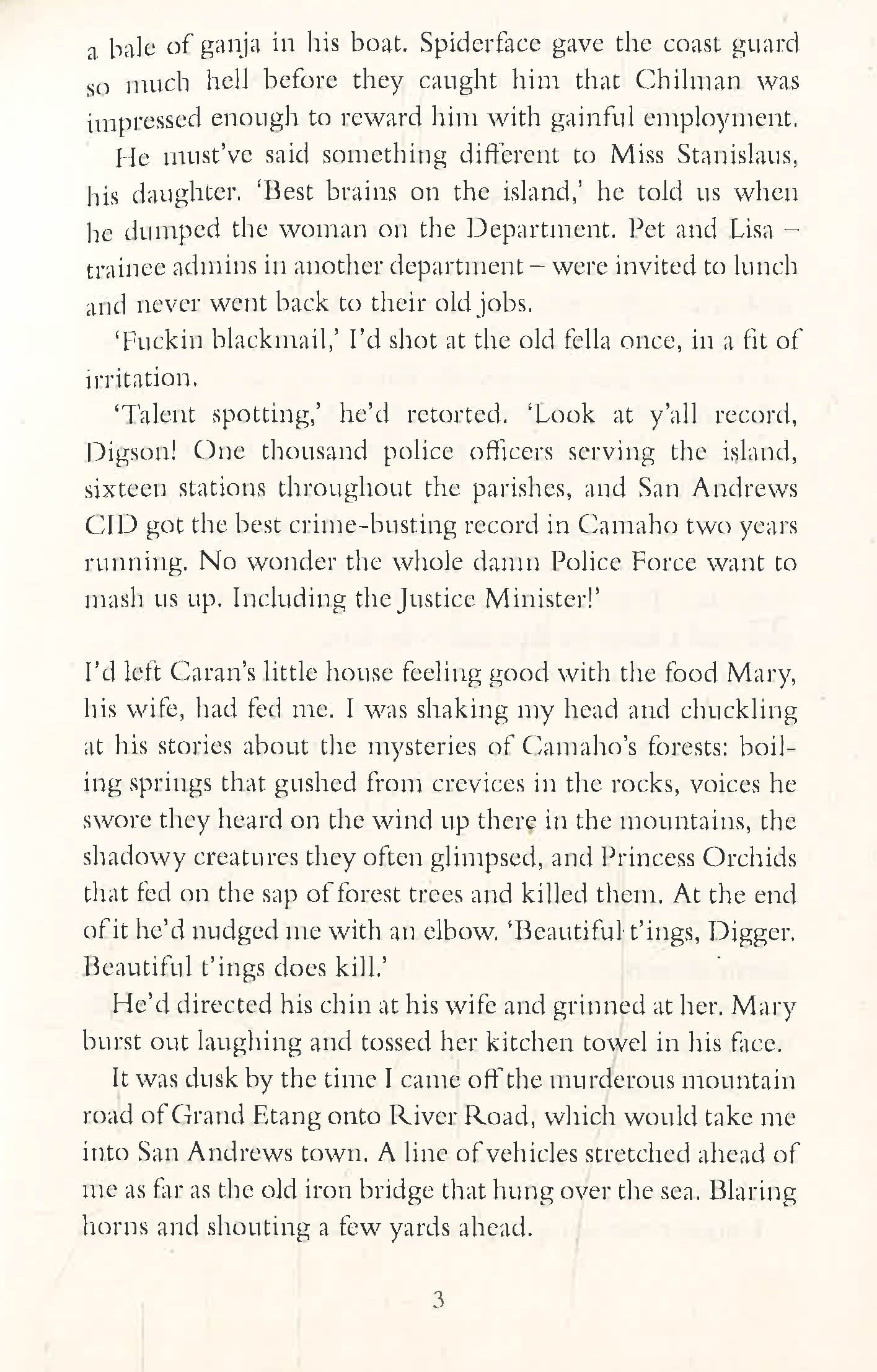 While the authorities bear down on them, Digger and Miss Stanislaus investigate a shocking roadside murder, the first tremors of a storm of crime and corruption that will break over Camaho at any moment.