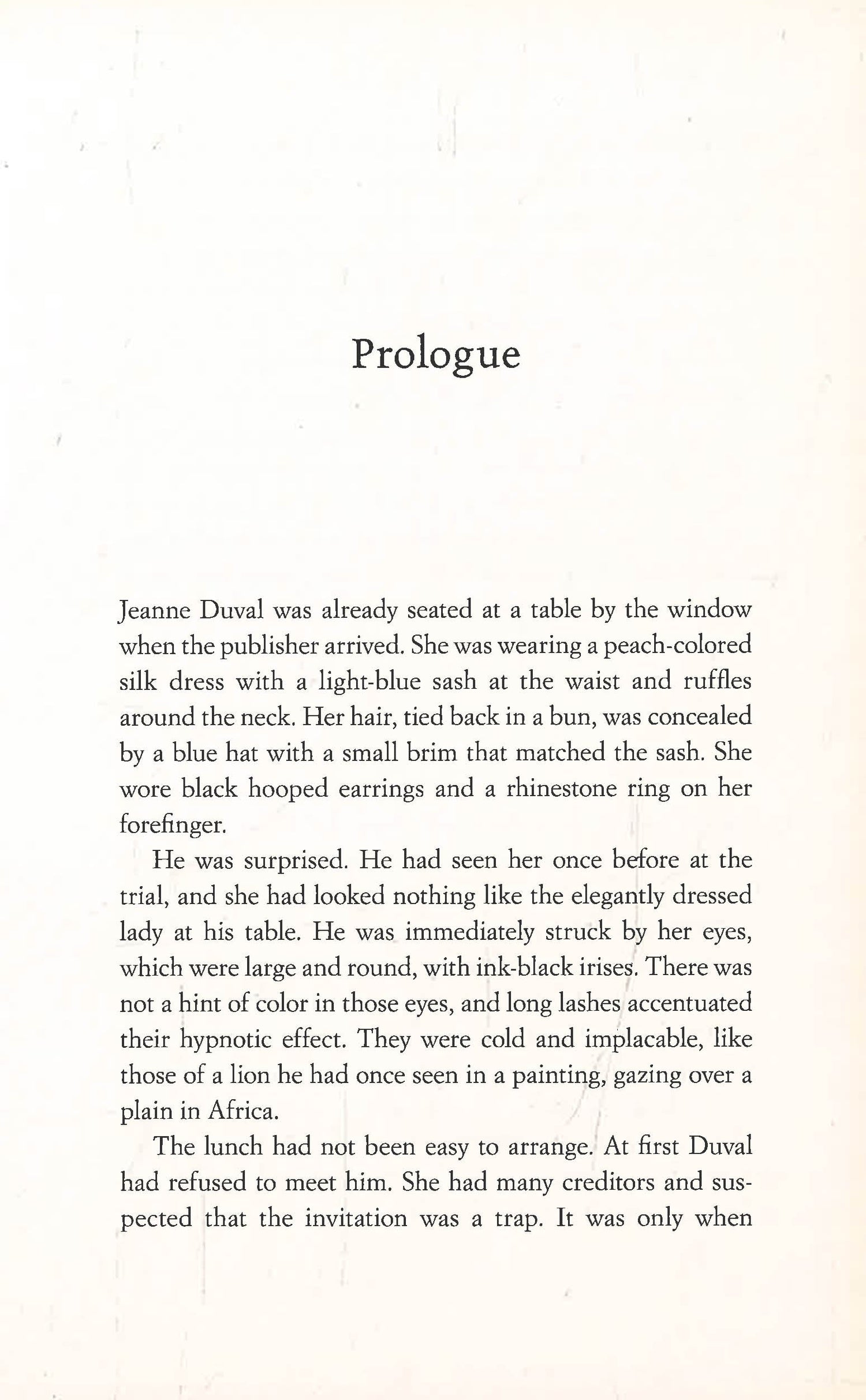 Still at work on the poems that he hoped would make his name, he spent his nights enjoying the alcohol, opium and women who filled the seedy streets of the city. One woman would catch his eye, a beautiful Haitian cabaret singer named Jeanne Duval. Their lives would remain forever intertwined thereafter, and their romance would inspire his most infamous poems leading to the banning of his masterwork, Les Fleurs du Mal, and a scandalous public trial for obscenity.