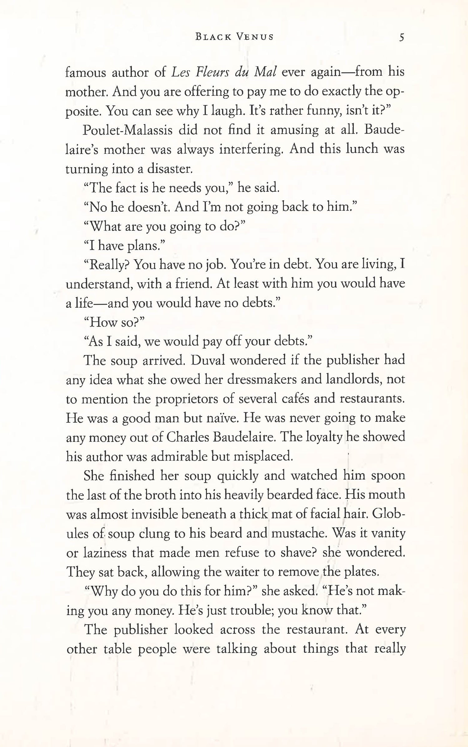 A fictional biographical slice of Baudelaire's life and love with his famous Haitian muse, Jeanne Duval, Black Venus captures the artistic scene in the great French capital city, at a time when the likes of Dumas and Balzac argued literature in the cafés of the Left Bank. Among the bohemians, the young Charles Baudelaire stood out, dressed impeccably thanks to an inheritance that was quickly vanishing.