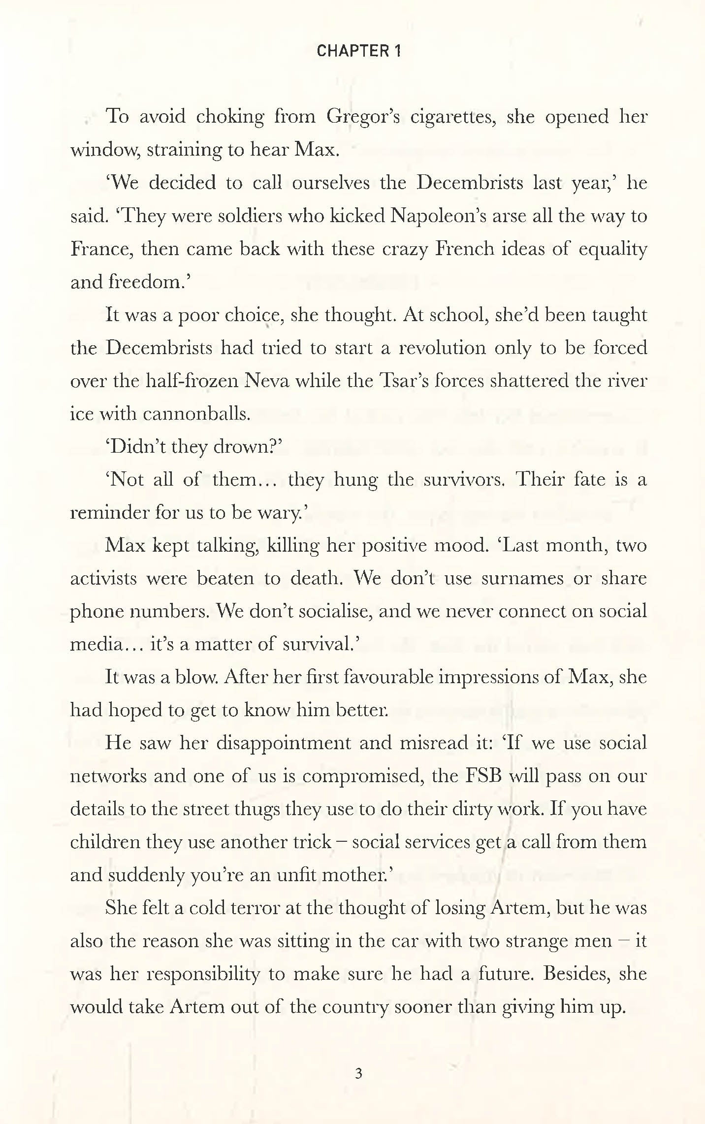 But when the victim is discovered to be an anti-government activist, investigating officer Natalya Ivanova suspects the authorities have something to hide.