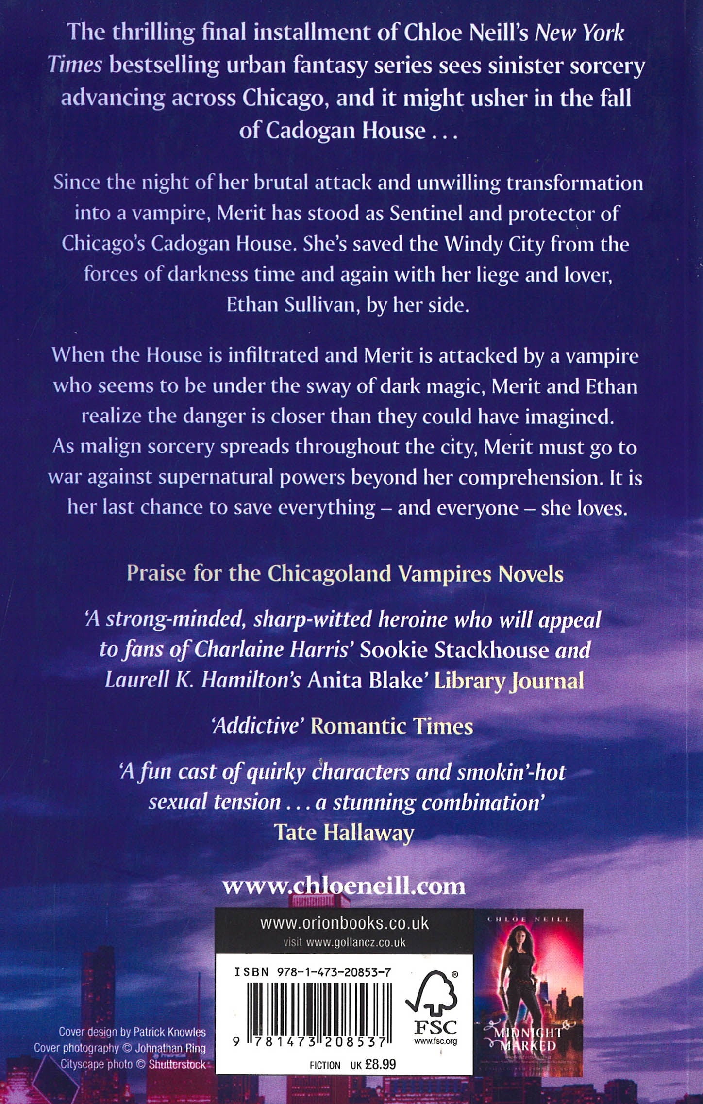 The thrilling final installment of Chloe Neill's New York Times bestselling urban fantasy series sees sinister sorcery advancing across Chicago, and it might usher in the fall of Cadogan House.... Since the night of her brutal attack and unwilling transformation into a vampire, Merit has stood as Sentinel and protector of Chicago's Cadogan House. She's saved the Windy City from the forces of darkness time and again with her liege and lover, Ethan Sullivan, by her side. When the House is infiltrated and Merit is attacked by a vampire who seems to be under the sway of dark magic, Merit and Ethan realize the danger is closer than they could have imagined. As malign sorcery spreads throughout the city, Merit must go to war against supernatural powers beyond her comprehension. It is her last chance to save everything-and everyone-she loves.