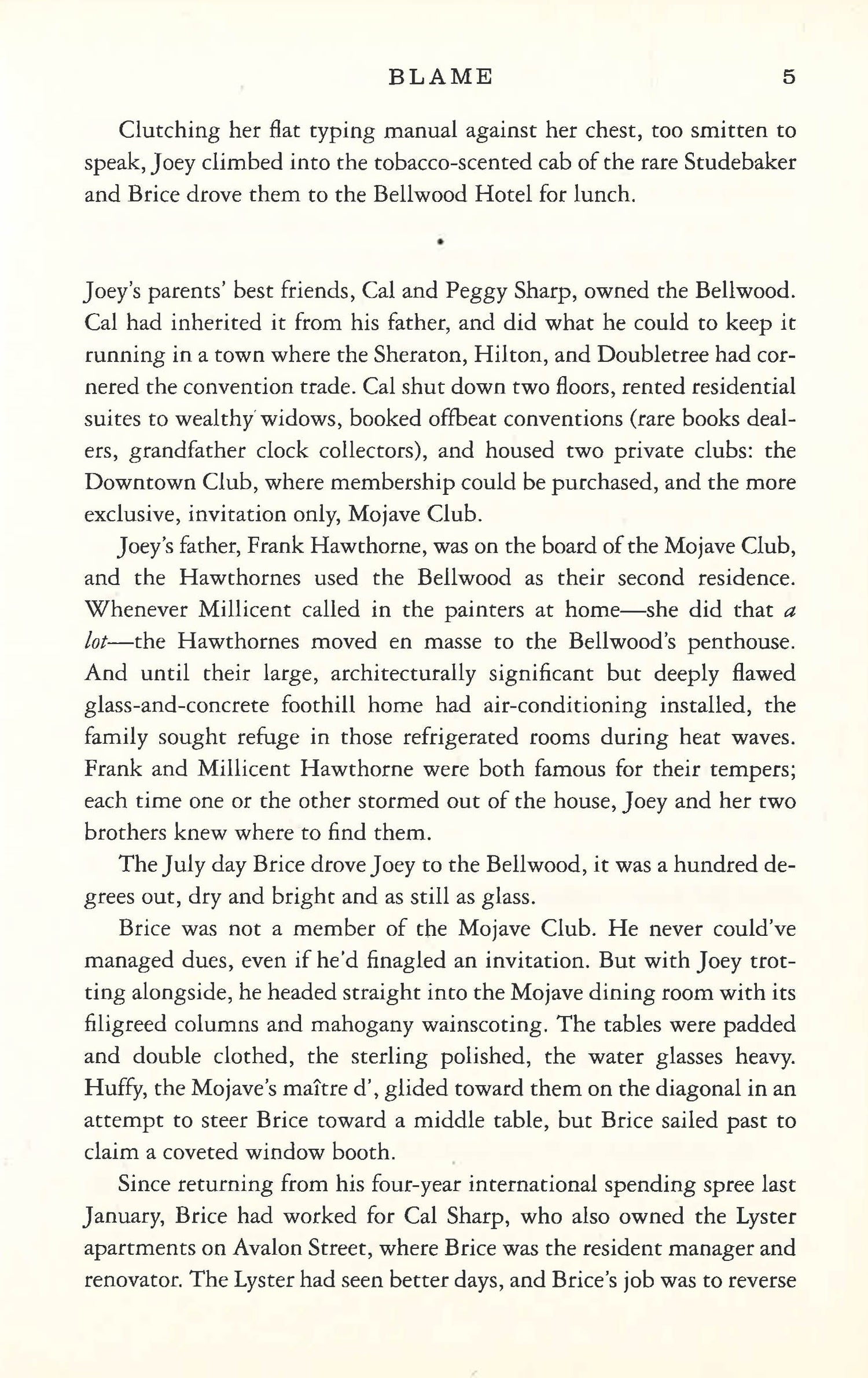 Patsy MacLemoore, a twenty-eight-year-old history professor with a brand-new Ph.D. and a wild streak, wakes up in jail--yet again--after another epic alcoholic blackout. This time, though, a mother and daughter are dead, run over in Patsy's driveway. Patsy will the next decades of her life atoning for this unpardonable act. She goes to prison, sobers up, marries a much older man she meets in AA, and makes ongoing amends to her victims' family. Then, another piece of news turns up, casting her crime, and her life, in a different and unexpected light. Brilliant, morally complex, and often funny, Blame is a breathtaking story of contrition and what it takes to rebuild a life from the bottom up.