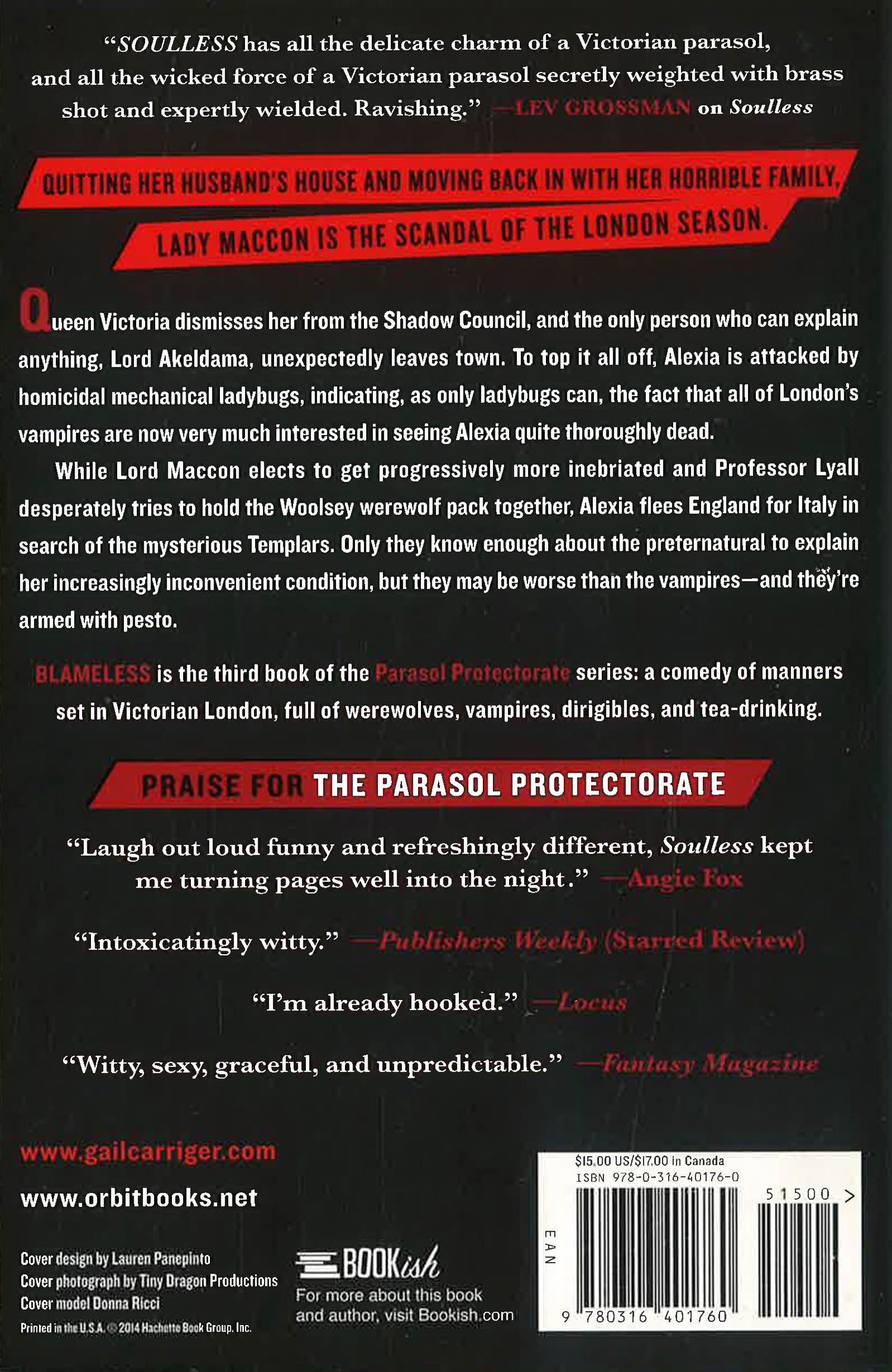 Blameless is the third book of the Parasol Protectorate series: a comedy of manners set in Victorian London, full of werewolves, vampires, dirigibles, and tea-drinking.