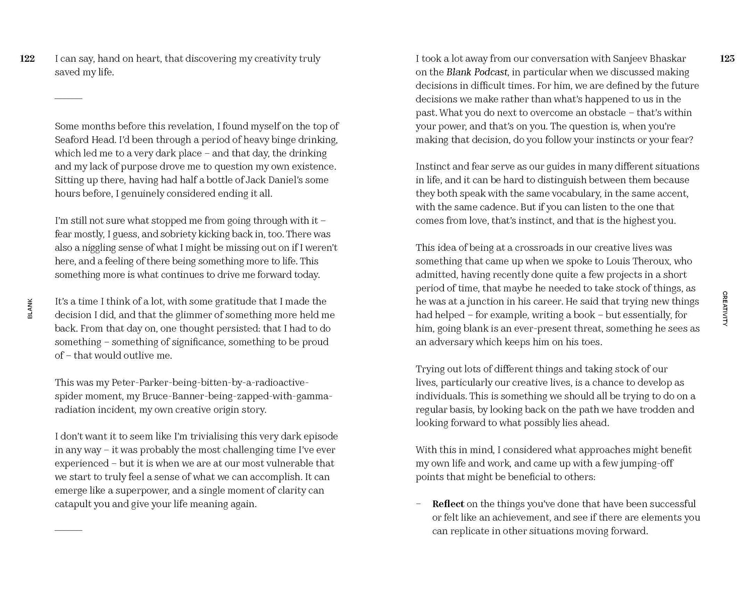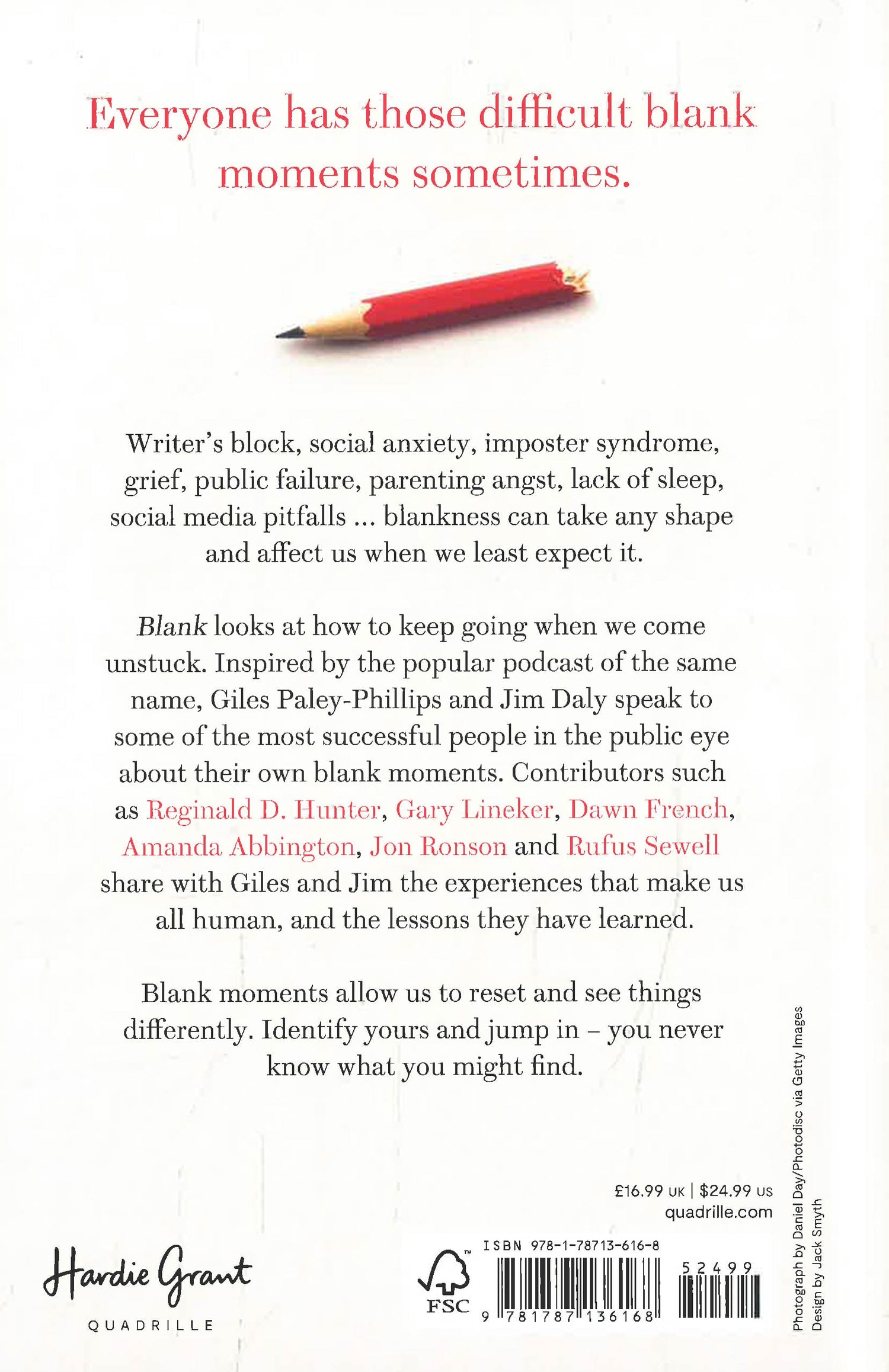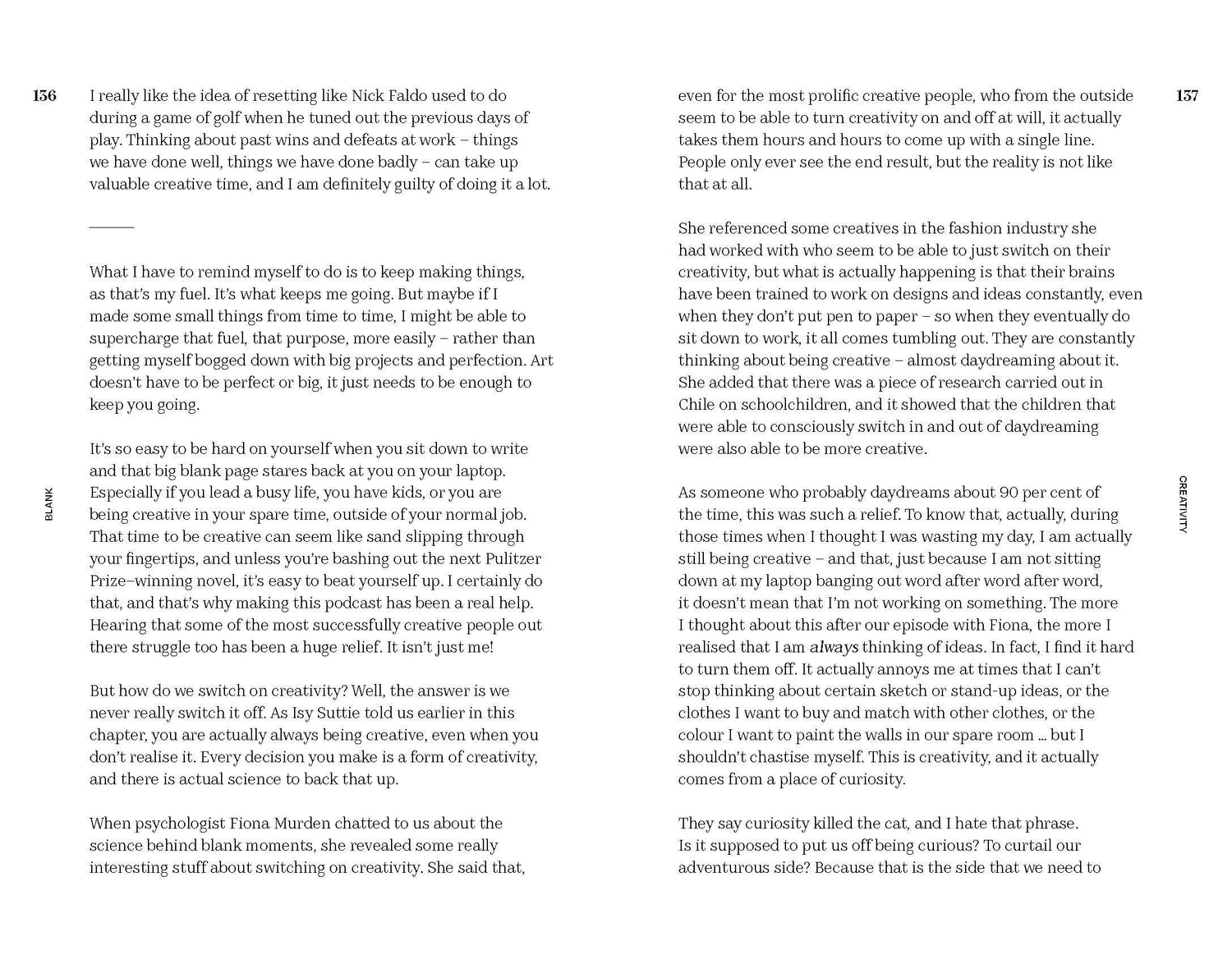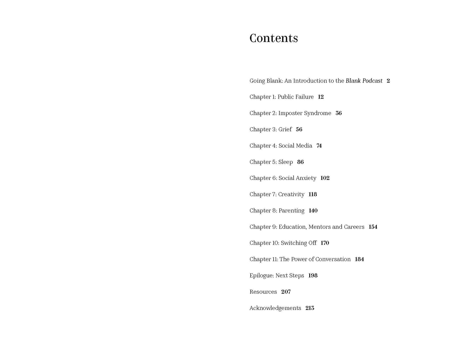 Blank is an informal, insightful podcast in which well-known people from acting, writing, politics and sports chat about their lives and how they get through tough moments like public failure, writer's block, social anxiety, imposter syndrome, identity crisis, and how they deal with parenting, grief, social media, their careers and switching off.