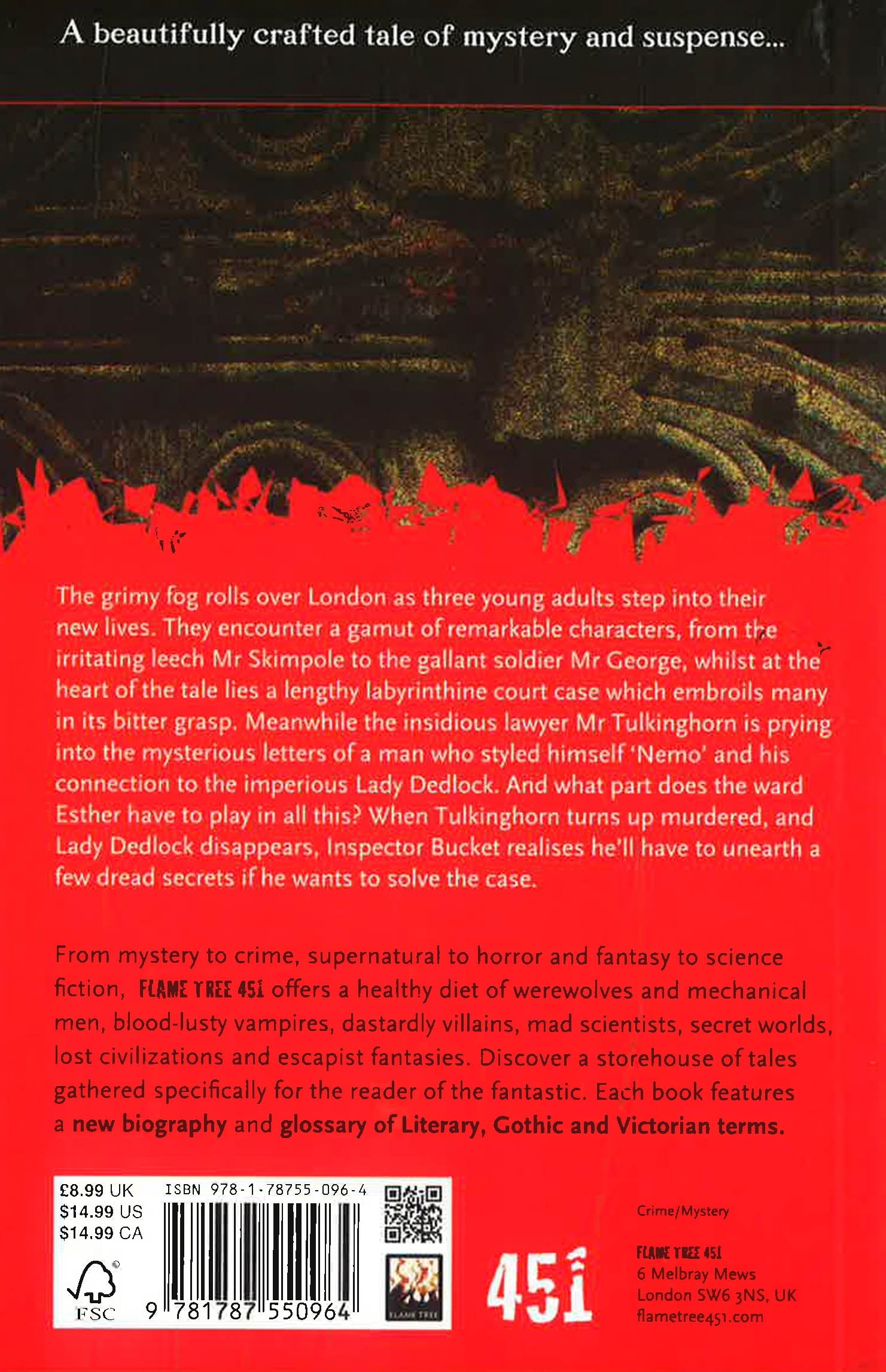 A beautifully crafted tale of crime, mystery and suspense. The grimy fog rolls over London as three young adults step into their new lives. They encounter a gamut of remarkable characters, from the irritating leech Mr Skimpole to the gallant soldier Mr George, whilst at the heart of the tale lies a lengthy labyrinthine court case which embroils many in its bitter grasp. Meanwhile the insidious lawyer Mr Tulkinghorn is prying into the mysterious letters of a man who styled himself 'Nemo'and his connection to the imperious Lady Dedlock. And what part does the ward Esther have to play in all this? When Tulkinghorn turns up murdered, and Lady Dedlock disappears, Inspector Bucket realises he'll have to unearth a few dreaded secrets if he wants to solve the case.