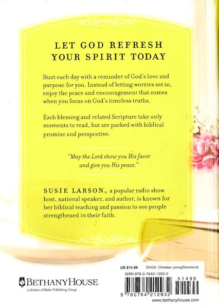 A Blessing a Day from Popular Author and Radio Host This beautiful devotional gift book is for readers who want to start their day with a reminder of God's love and purpose for them. So often we wake up worried about our to-do lists and responsibilities and need a reminder of how God feels about us and who we are in him. Several years ago Susie began posting daily blessings on Facebook, and since then thousands have responded and forwarded the blessings along to others. The blessings take only moments to read, but are packed with biblical promise and perspective. Along with a blessing, each day's spread also includes a related Scripture to point readers back to God's timeless truth.