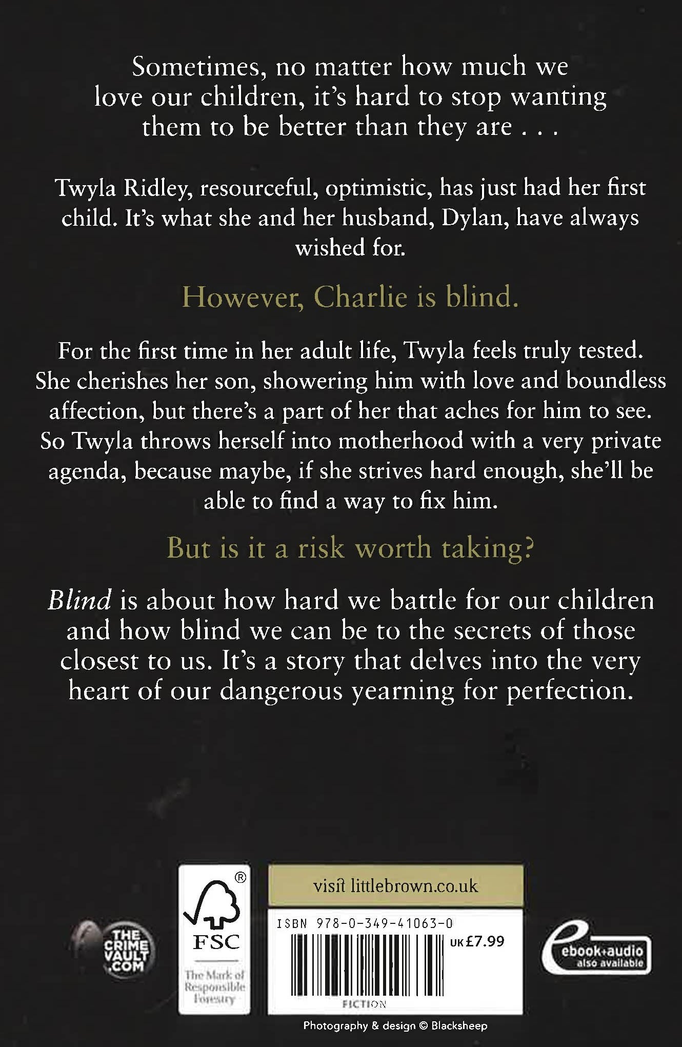 Blind is about how hard we battle for our children and how blind we can be to the secrets of those closest to us. It's a story that delves into the very heart of our dangerous yearning for perfection.