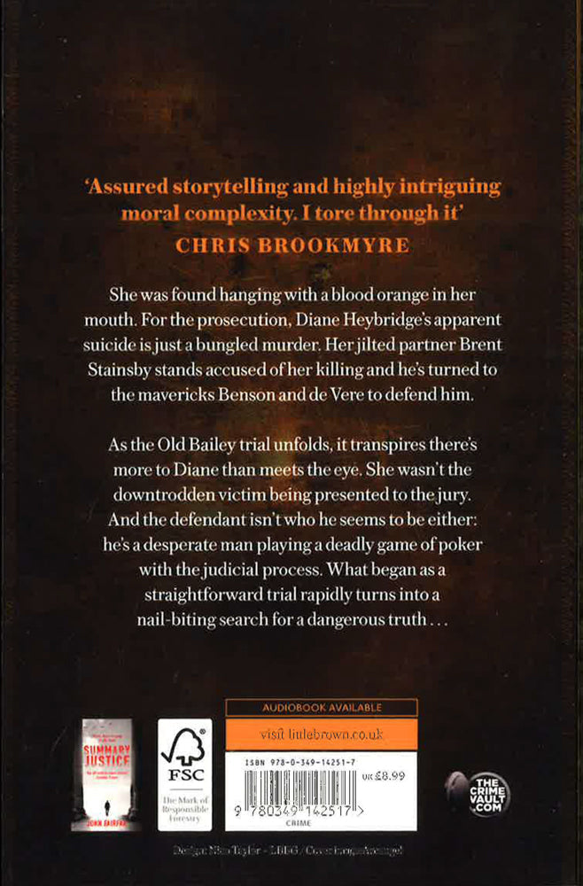 Blind Defence is a thrilling courtroom drama novel from Crime Writers' Association Gold Dagger winning author John Fairfax.Vivid and exciting' The TimesWINNER OF THE PRIX DU MASQUEShe was found hanging in a dingy London bedsit with a blood orange in her mouth. Diane Heybridge, a young woman without a past or much of a future, has captured in death the compassion denied her in life. For the prosecution, this seeming suicide is nothing more than a bungled killing and a disgusted public looks to Court 2 of the Old Bailey for justice. Her callous, jilted partner Brent Stainsby stands accused of her murder and he's turned to the maverick legal team William Benson and Tess de Vere to defend him. However, as the trial unfolds it soon becomes clear that there is far more to Diane Heybridge than meets the eye. She wasn't the weak and downtrodden victim now being presented to the jury. She was capable of a sophisticated form of vengeance. By the same token, Brent Stainsby isn't who he seems to be either. He's hiding a motive for murder unknown to the police and may well be playing a deadly game of poker with the judicial process. What began as a simple trial rapidly turns into a complex search for the truth beyond the confines of the courtroom...