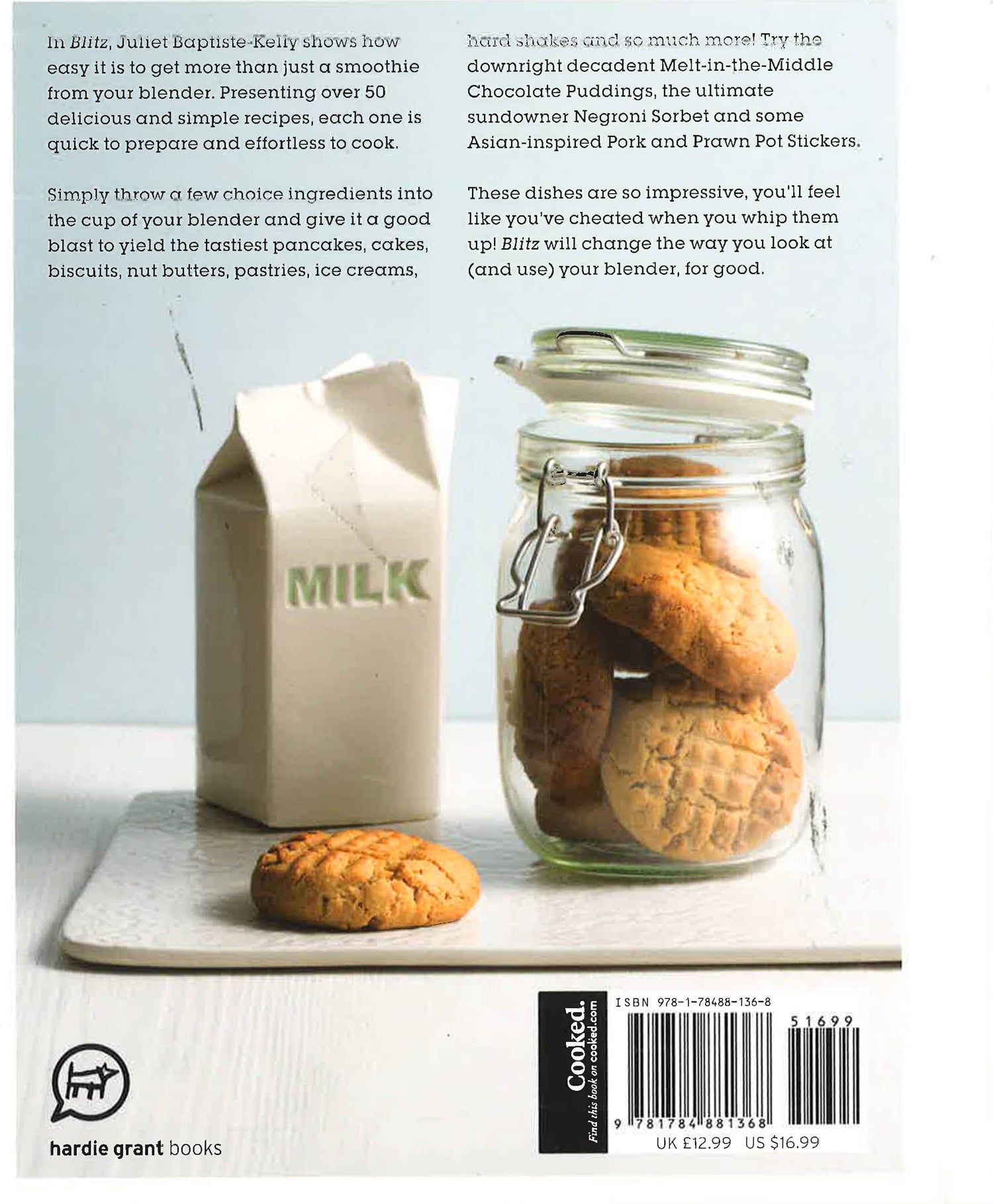 Blenders, liquidizers, and juicers are the obvious choice when you need to make a smoothie, but they also hold untapped potential for delicious cakes, batters, dips, and soups. Few people realize it, but simple, nutritious bakes, desserts, and sauces can be made just as effortlessly as more traditional smoothies and juices. In Blitz, Juliet Baptiste-Kelly explains how to get more from your blender or liquidizer. Simply throw a few choice ingredients into the cup of the blender and give it a good blast to yield the fluffiest pancakes, tastiest pestos, and even a hard milkshake! Ideas range from downright decadent chocolate fondants to gluten-free, nutrient-packed spinach blinis. The recipes are concise, accessible, and easily adaptable with simple suggestions for variations according to personal taste. Make the most of your blender and blitz your way through this imaginative cookbook.