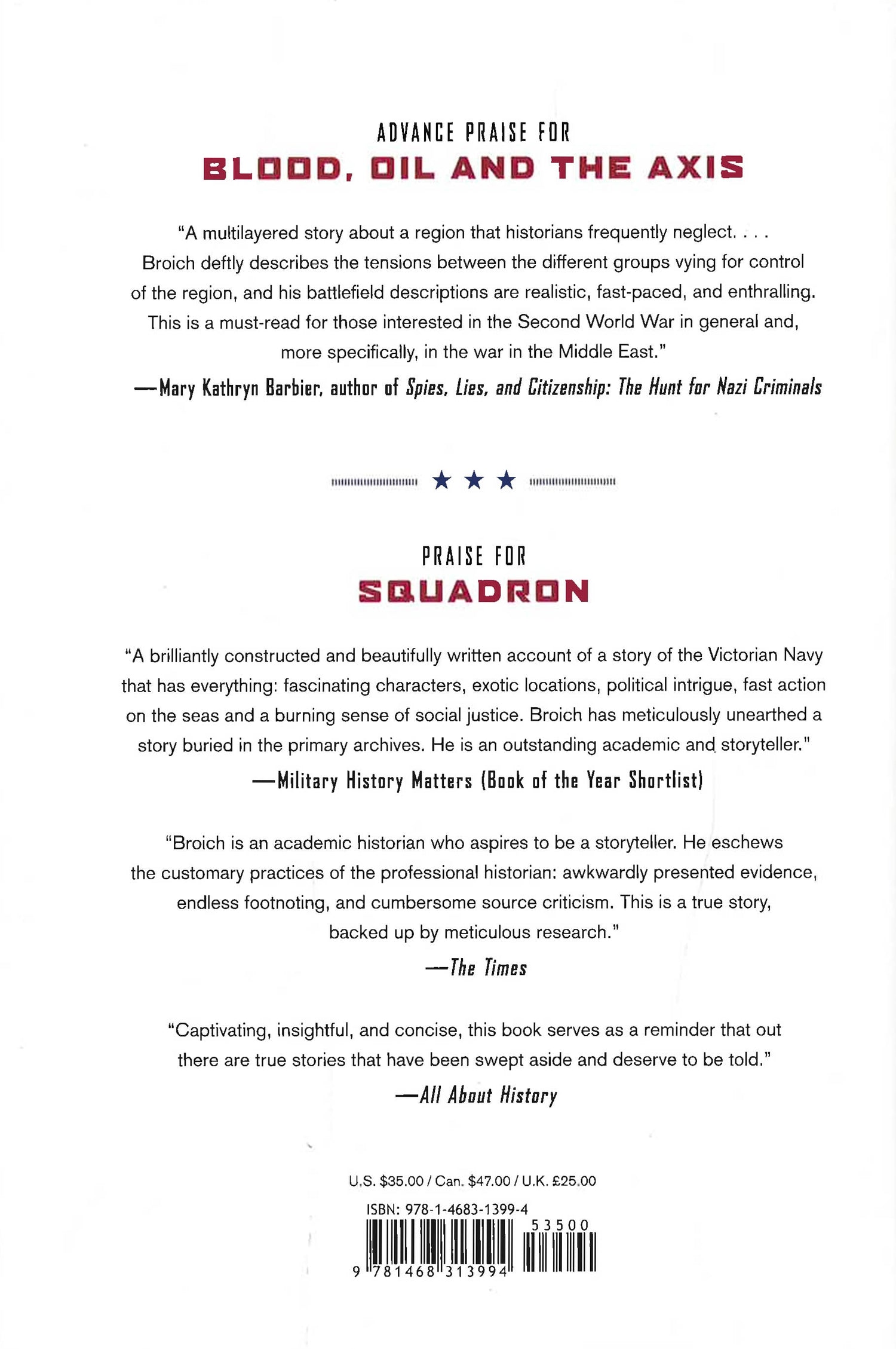 Spring 1941 was a high point for the Axis war machine. Western Europe was conquered; southeastern Europe was falling, Great Britain on its heels; and Rommel's Afrika Korps was freshly arrived to drive on the all-important Suez Canal. In Blood, Oil and the Axis, historian John Broich tells the story of Iraq and the Levant during this most pivotal time of the war. The browbeaten Allied forces had one last remaining hope for turning the war in their favor: the Axis running through its fuel supply. But when the Golden Square-four Iraqi generals allegiant to the Axis cause-staged a coup in Iraq, elevating a pro-German junta and prompting military cooperation between Vichy French-occupied Syria and Lebanon and the Axis, disaster loomed. Blood, Oil and the Axis follows those who participated in the Allies' frantic, improvised, and unlikely response to this dire threat: Palestinian and Jordanian Arabs, Australians, American and British soldiers, Free French Foreign Legionnaires, and Jewish Palestinians, all who shared a desperate, bloody purpose in quashing the formation of an Axis state in the Middle East. Memorable figures of this makeshift alliance include Jack Hasey, a young American who ran off to fight with the Free French Foreign Legion before his own country entered the war; Freya Stark, a famous travel-writer-turned-government-agent; and even Roald Dahl, a twenty-three-year-old Royal Air Force recruit (and future author of beloved children's books). Taking the reader on a tour of cities and landscapes grimly familiar to today's reader-from a bombed-out Fallujah, to Baghdad, to Damascus-Blood, Oil and the Axis is poised to become the definitive chronicle of the Axis's menacing play for Iraq and the Levant in 1941 and the extraordinary alliance that confronted it.