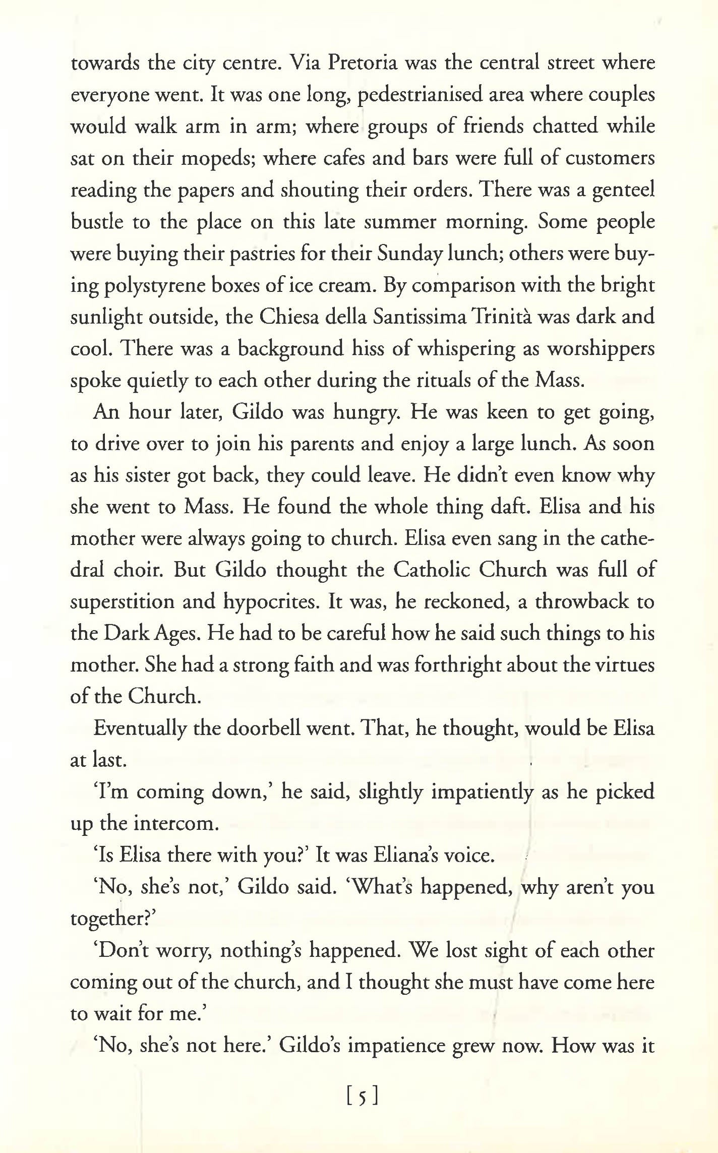 One Sunday morning in 1993 a 16-year-old girl named Eliza Claps goes missing from a church in the centre of Potenza, Italy. Shortly before her disappearance, Elisa had met Danilo Restivo, a strange local boy with a fetish for cutting women's hair on the back of buses. Elisa's family are convinced that Resitvo is responsible for their daughter's disappearance, but he is protected by local big-wigs: by his Sicilian father, by a doctor with links to organised crime, by a priest who had vices of his own. Years went by and Elisa's family could find only false leads.