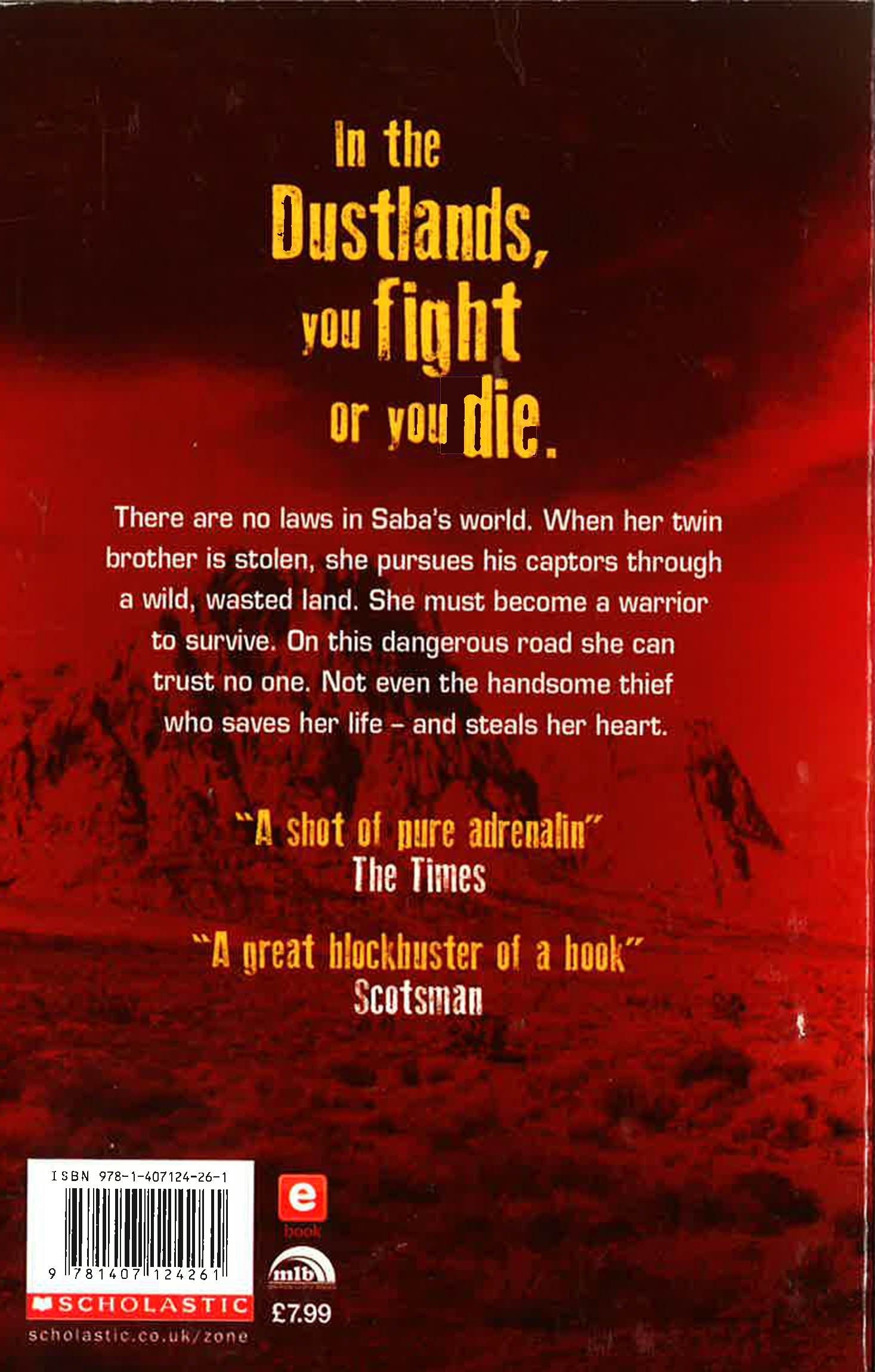 Winner of the Costa Children's Book Award 2011. "I ain't afeared of nuthin." Saba's twin is golden. She is his living shadow. He is strong and beautiful. She is scrawny and dark. Nothing will separate them...Raised in isolated Silverlake, Saba is ignorant of the harsh and violent world beyond her home. But when her twin is snatched by black-robed riders, red rage fills her soul. How will Saba find him in a wild, scorching and lawless land? Racing across the cruel dustlands to find him, she can spare no one. Not even the boy who saves her life. She must silence her heart to survive. Blood will spill. Every step of Saba's journey sizzles with danger in this futuristic thriller, which beats with a powerful, red-blooded heart. "A shot of pure adrenalin. Exuberant, exciting and charged with emotion...If a better book for teenagers is published this year, I'll be surprised." The Times "Has an elemental power, unfolding across achingly barren landscapes, full of blistering hotwinds and swirling clouds of orange dust." New York Times