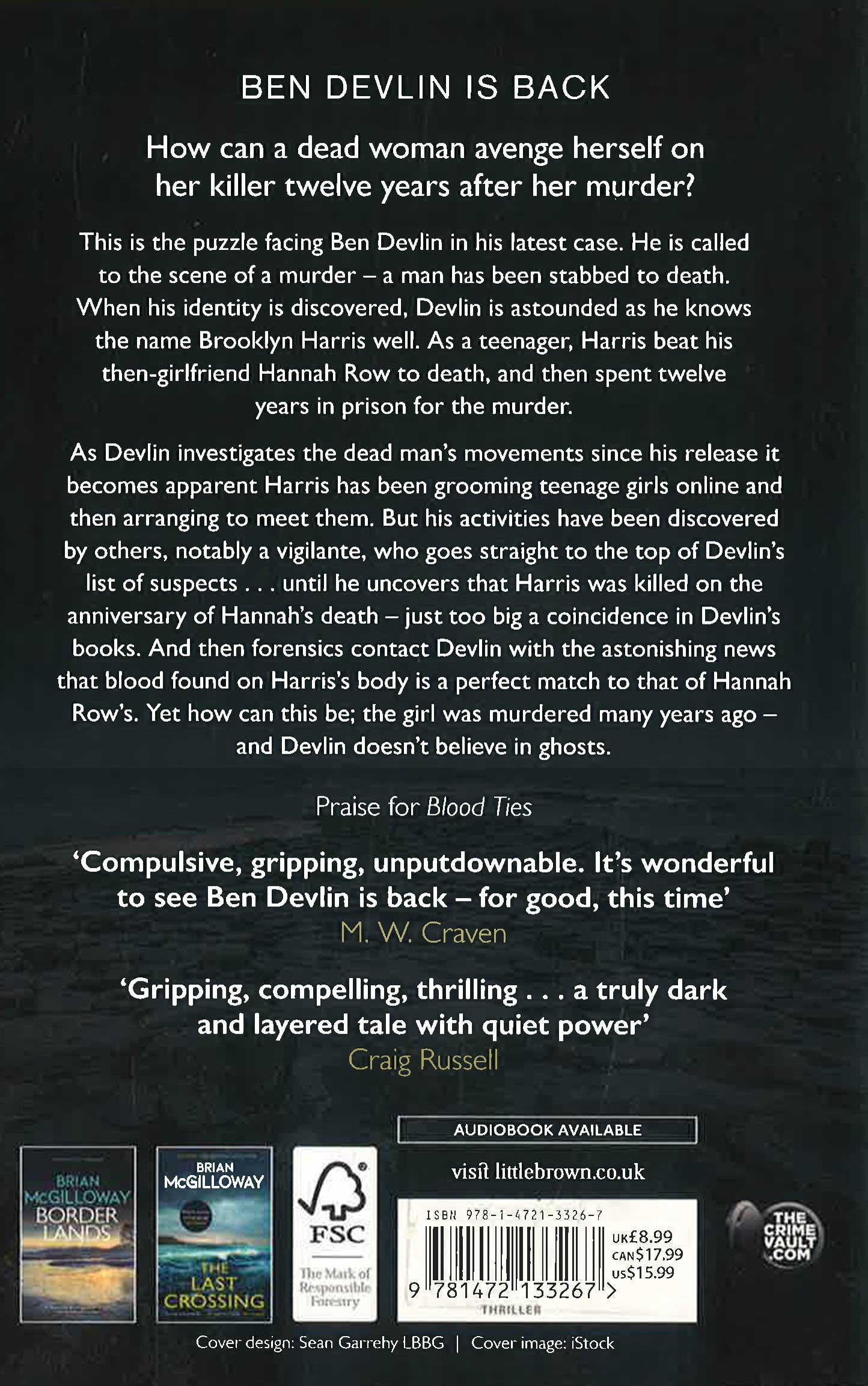 As Devlin investigates the dead man's movements since his release it becomes apparent Harris has been grooming teenage girls online and then arranging to meet them. But his activities have been discovered by others, notably a vigilante, who goes straight to the top of Devlin's list of suspects... until he uncovers that Harris was killed on the anniversary of Hannah's death - just too big a coincidence in Devlin's books. So Hannah's family join the ever-growing list of suspects being interviewed by his team. And then forensics contact Devlin with the astounding news that blood found on Harris's body is a perfect match to that of Hannah Row's. Yet how can this be; the girl was murdered many years ago - and Devlin doesn't believe in ghosts.