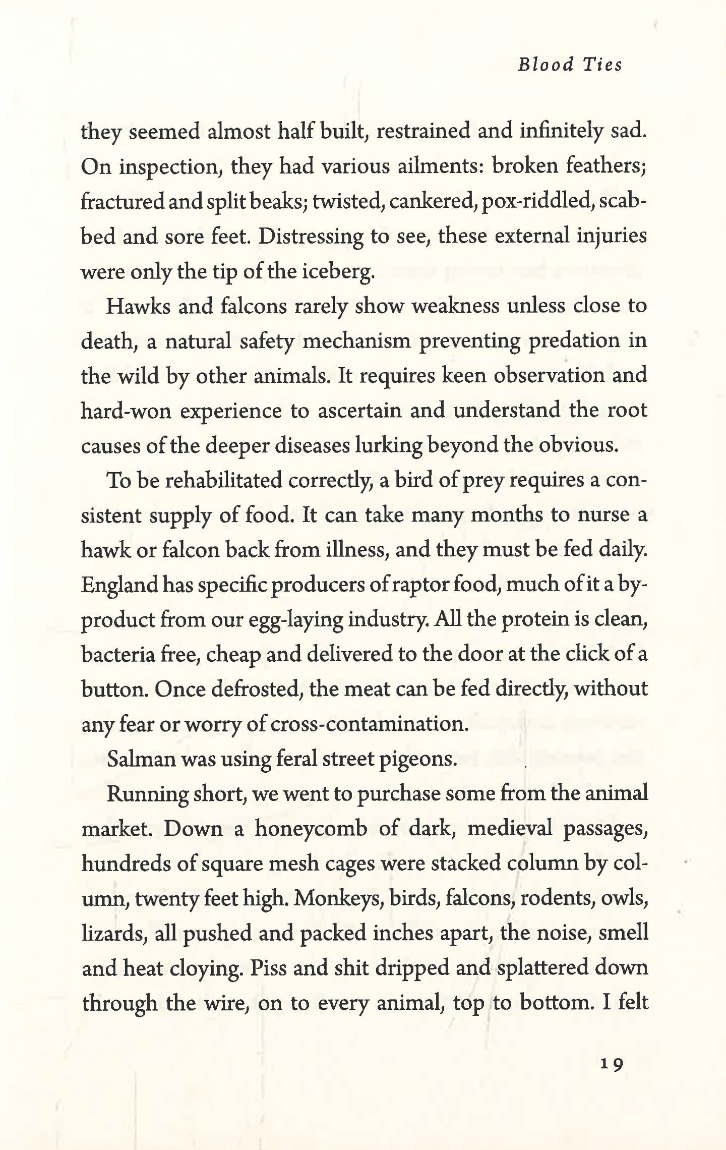 Ben Crane writes with uncanny accuracy and lyrical precision about the intricacies of birds' behaviour and their instincts. He has a ruthless eye for the minute details of natural processes - of plumage, the patterns of flight, of killing, death and decay. He's as clear-eyed about himself and his detachment from ordinary human society as he is about the flight of peregrines and goshawks.