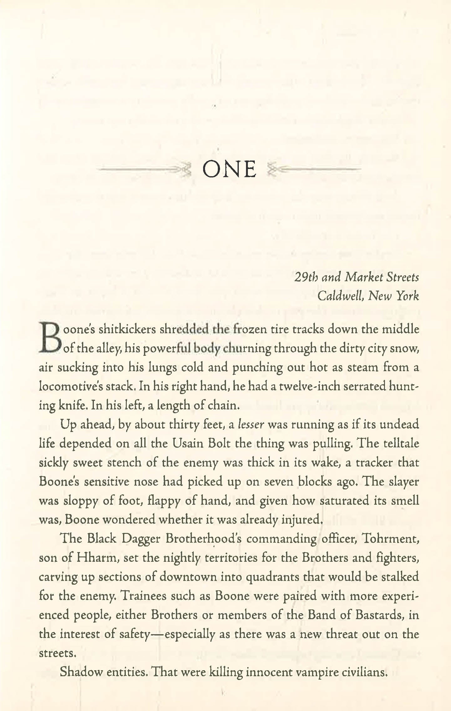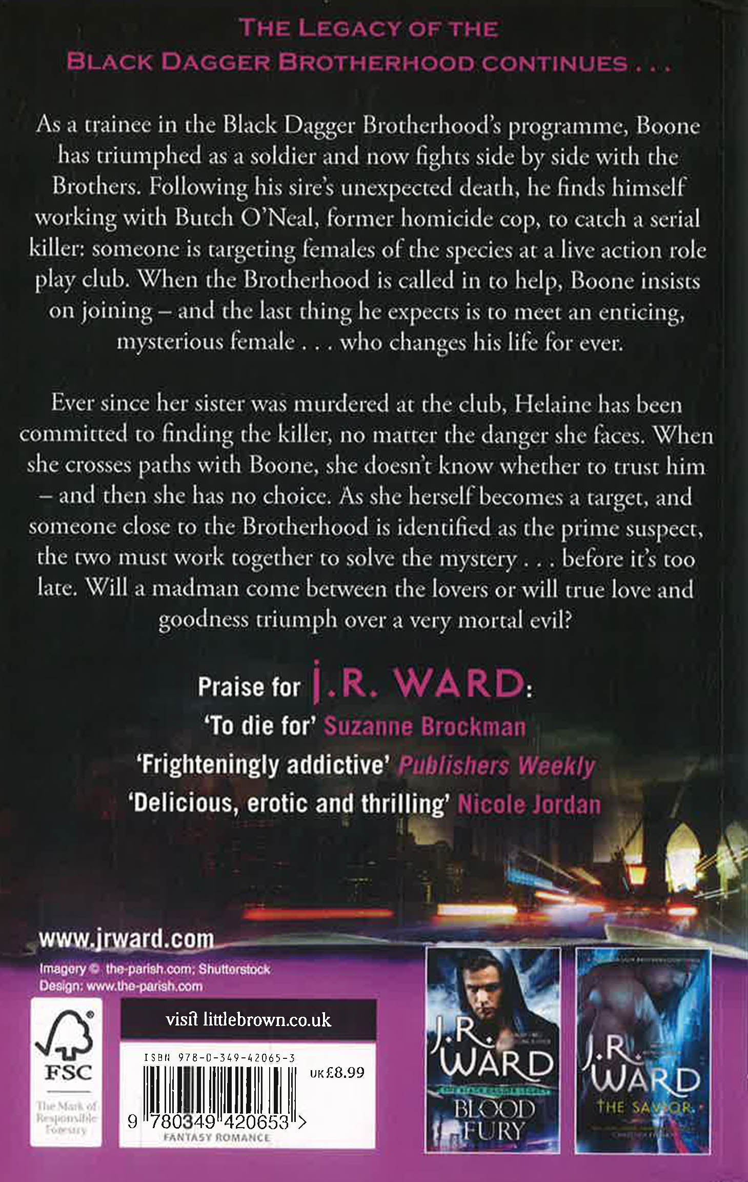 To die for' SUZANNE BROCKMANN'Frighteningly addictive' PUBLISHERS WEEKLY 'Delicious, erotic, and thrilling' NICOLE JORDAN _____________________As a trainee in the Black Dagger Brotherhood's program, Boone has triumphed as a soldier and now fights side by side with the Brothers. Following his sire's unexpected death, he is taken off rotation against his protests-and he finds himself working with Butch O'Neal, former homicide cop, to catch a serial killer: Someone is targeting females of the species at a live action role play club. When the Brotherhood is called in to help, Boone insists on being a part of the effort-and the last thing he expects is to meet an enticing, mysterious female . . . who changes his life forever.Ever since her sister was murdered at the club, Helaine has been committed to finding the killer, no matter the danger she faces. When she crosses paths with Boone, she doesn't know whether to trust him or not-and then she has no choice. As she herself becomes a target, and someone close to the Brotherhood is identified as the prime suspect, the two must work to together to solve the mystery...before it's too late. Will a madman come between the lovers or will true love and goodness triumph over a very mortal evil?_____________________Find out why readers are OBSESSED with the Black Dagger Brotherhood...'Intriguing, adrenaline-pumping' BOOKLIST 'Insanely good! . . . Intensely romantic and straight up flipping steamy, violent and gruesome, heartbreaking and deep. Her addictive writing tells a story like none other' Goodreads reviewer'I can't get enough of these sexy, tough, intriguing vampires' Amazon reviewer'Emotional by epic proportions' Kobo reviewer'The Black Dagger Brotherhood is a twisting, often surprising, but always awesome read' Amazon reviewer'The story had me captivated the whole way' Kobo reviewer'Each and every character is compelling' Amazon reviewer'A must read' Goodreads reviewer