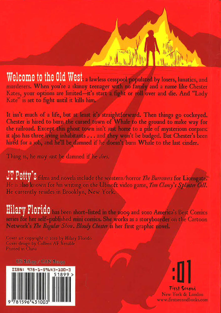 A deliciously gruesome horror tale set in the old west. This isn't John Wayne's heroic old west. This is the real deal: a filthy, disease-ridden frontier populated by losers, lunatics, and murderers. And when you're a skinny teenager with no family and a name like Chester Kates, your options are limited. It's stand up and fight or roll over and die, so Chester, aka "Lady Kate," is set to fight until it kills him. It isn't much of a life, but it's at least straightforward. Until things go all cockeyed when Chester is hired to ride his horse (also named Chester) to a ghost town and burn it to the ground. Except the ghost town doesn't just boast a tidy collection of mangled corpses: it also has three living inhabitants . . . who won't be budged. But Chester's been hired for a job, and he'll be damned if he doesn't burn the town to the last cinder. Thing is, he may just be damned if he does.This horror-Western-mystery graphic novel will send a thrill - and a chill - down your spine. Funny, fascinating, and downright horrible, this is a book that keeps you turning the pages.