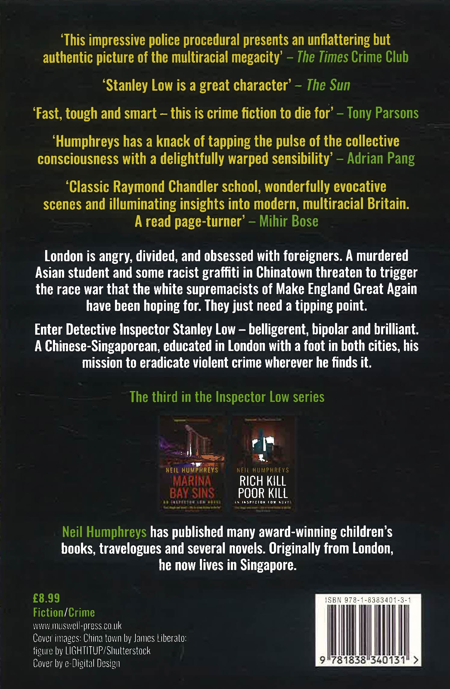 London is angry, divided, and obsessed with foreigners. A murdered Asian and some racist graffiti in Chinatown threaten to trigger a race war that the white supremacists of Make England Great Again have been hoping for. They just need a tipping point. He arrives in the shape of Detective Inspector Stanley Low. Brilliant and bipolar. He hates everyone almost as much as he hates himself. Singapore doesn't want him, and he doesn't want to be in London. There are too many bad memories.