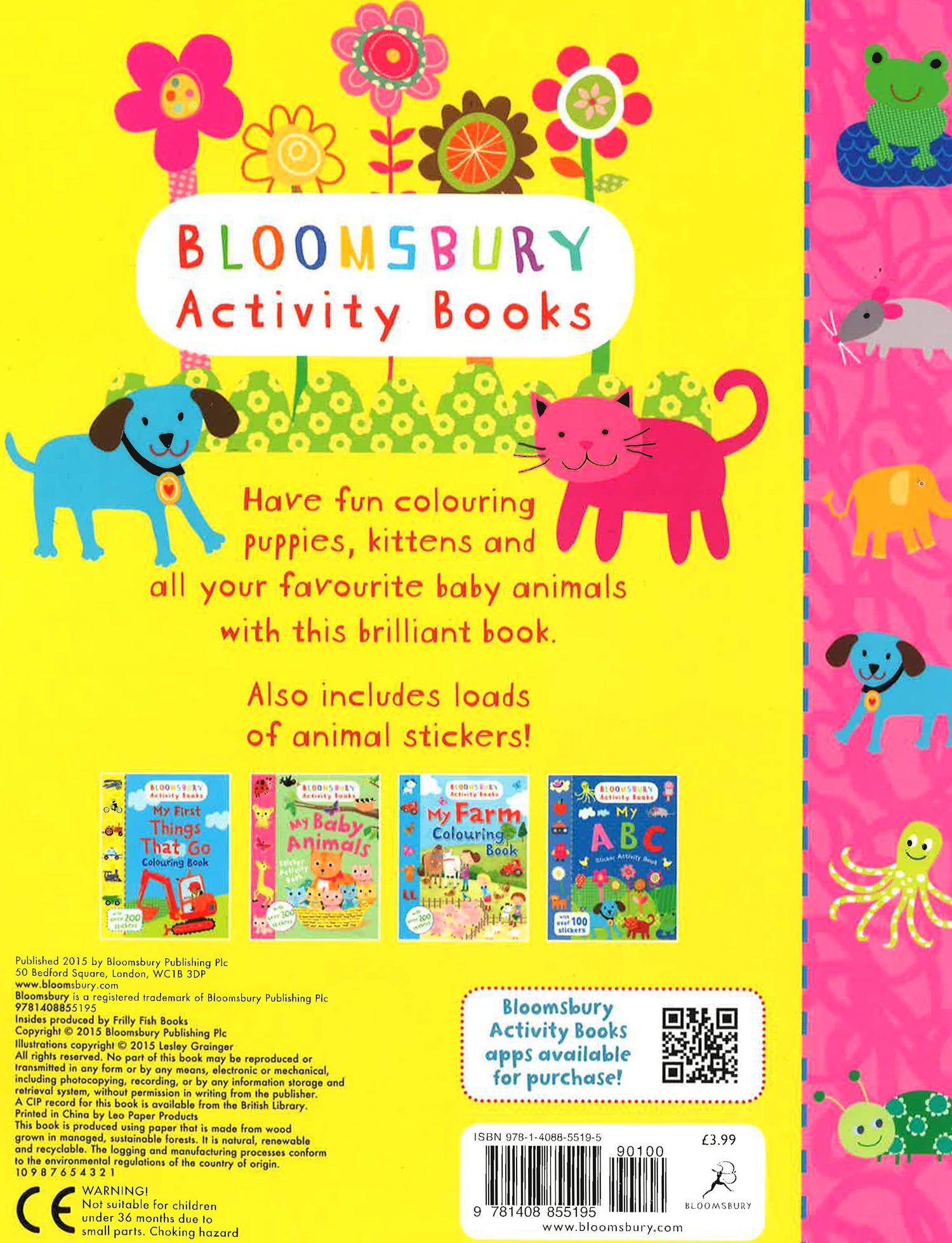 Have fun colouring in puppies, kittens and all your favourite baby animals with this brilliant book. Also includes loads of animal stickers! Bloomsbury Activity Books provide hours of colouring, stickering and activity fun for boys and girls alike. Every book includes enchanting, bright and beautiful illustrations which children and parents will find very hard to resist. Perfect for providing entertainment at home or on the move!