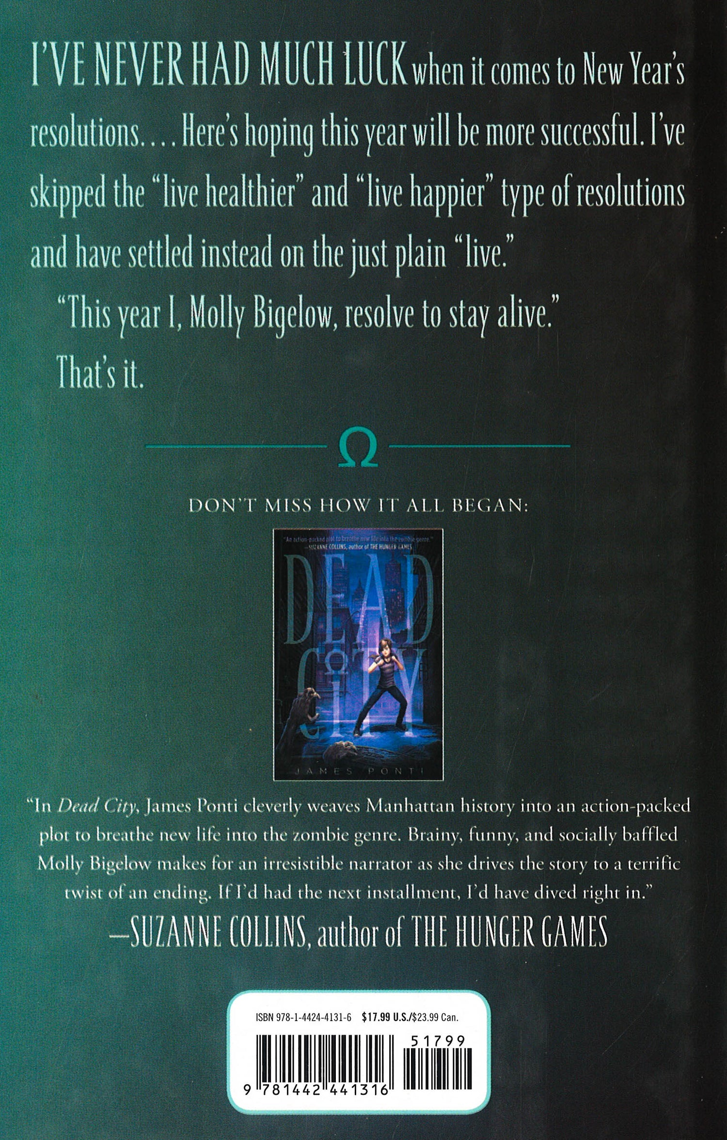 Molly is ready for more nonstop, undead action in this follow-up to Dead City , which Kirkus Reviews described as "a fast-paced read for those who like their zombies with just a little fright." When Molly Bigelow discovered that zombies shared New York with humans, she didn't think life could get more shocking. Then she learned that her mother was once one of the greatest zombie killers ever - and she discovered that her dead mother is not technically dead at all (although she isn't alive, either). Molly's efforts to keep these secrets and to help her Omega team track down the identity of the original thirteen zombies will take her from the Macy's Thanksgiving Day parade to New Year's Eve in Times Square. Her loyalties to friends and family will be put to the test. And her life will be changed in ways she never could have imagined.