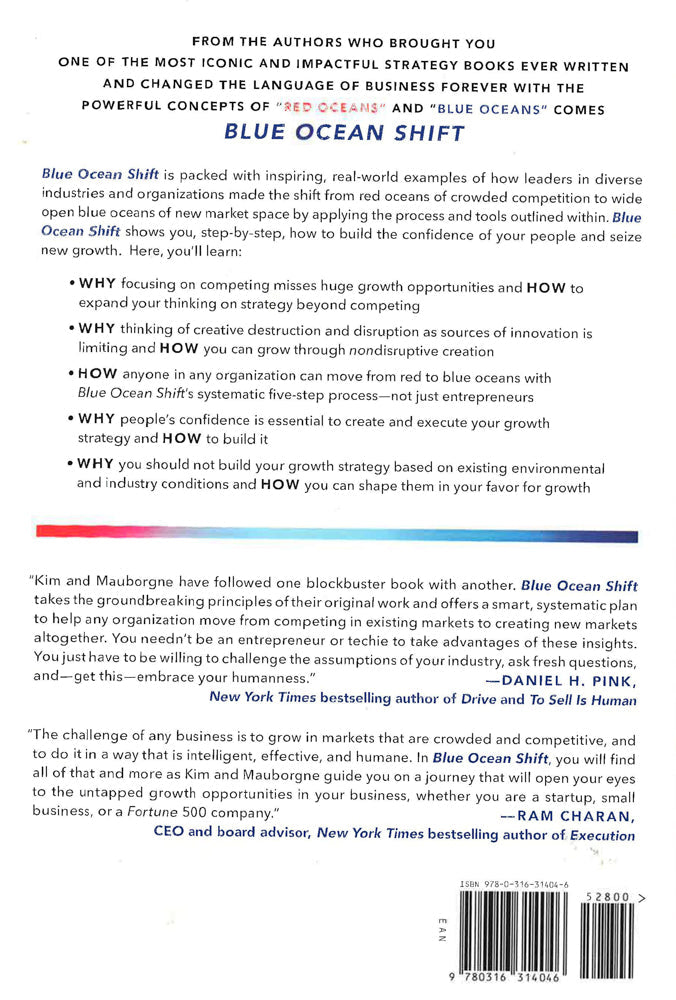 Blue Ocean Shift is the essential follow up to Blue Ocean Strategy, the classic and 3.6 million copy global bestseller by world-renowned professors W. Chan Kim and Renee Mauborgne. Drawing on more than a decade of new work, Kim and Mauborgne show you how to move beyond competing, inspire your people's confidence, and seize new growth, guiding you step-by-step through how to take your organization from a red ocean crowded with competition to a blue ocean of uncontested market space. By combining the insights of human psychology with practical market-creating tools and real-world guidance, Kim and Mauborgne deliver the definitive guide to shift yourself, your team, or your organization to new heights of confidence, market creation, and growth. They show why nondisruptive creation is as important as disruption in seizing new growth. Blue Ocean Shift is packed with all-new research and examples of how leaders in diverse industries and organizations made the shift and created new markets by applying the process and tools outlined in the book. Whether you are a cash-strapped startup or a large, established company, nonprofit or national government, you will learn how to move from red to blue oceans in a way that builds your people's confidence so that they own and drive the process. With battle-tested lessons learned from successes and failures in the field, Blue Ocean Shift is critical reading for leaders, managers, and entrepreneurs alike. You'll learn what works, what doesn't, and how to avoid the pitfalls along the way. This book will empower you to succeed as you embark on your own blue ocean journey. Blue Ocean Shift is indispensable for anyone committed to building a compelling future.