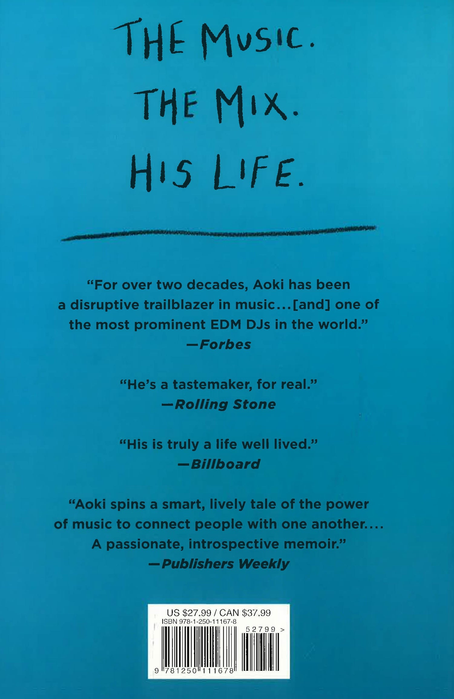 In Blue, Aoki recounts the epic highs of music festivals, clubs and pool parties around the world, as well as the lows of friendships lost to drugs and alcohol, and his relationship with his flamboyant father. Illustrated with candid photos gathered throughout his life, the book reveals how Aoki became a force of nature as an early social media adopter, helping to turn dance music into the phenomenon it is today. All this, while remaining true to his DIY punk rock principles, which value spontaneity, fun and friendship above all else—demonstrable by the countless cakes he has flung across cities worldwide.