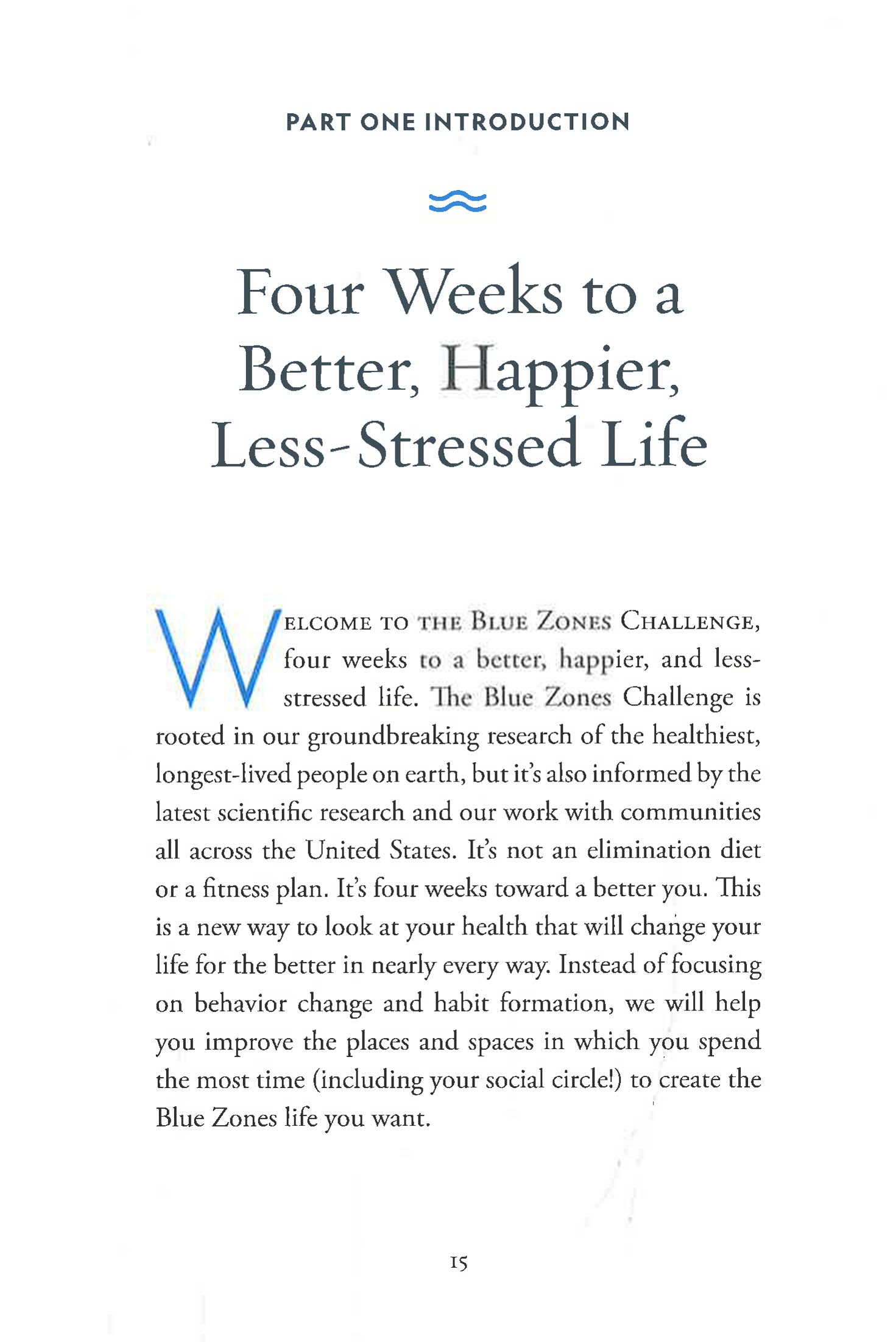 After four weeks--and with the help of easy-to-use worksheets and recipes - you'll see results in your weight, your well-being, and your general health. From there, follow the Blue Zones challenge through the rest of the year with an 11-month sustainability calendar that will continue to encourage you and build upon the foundation you've already started.
