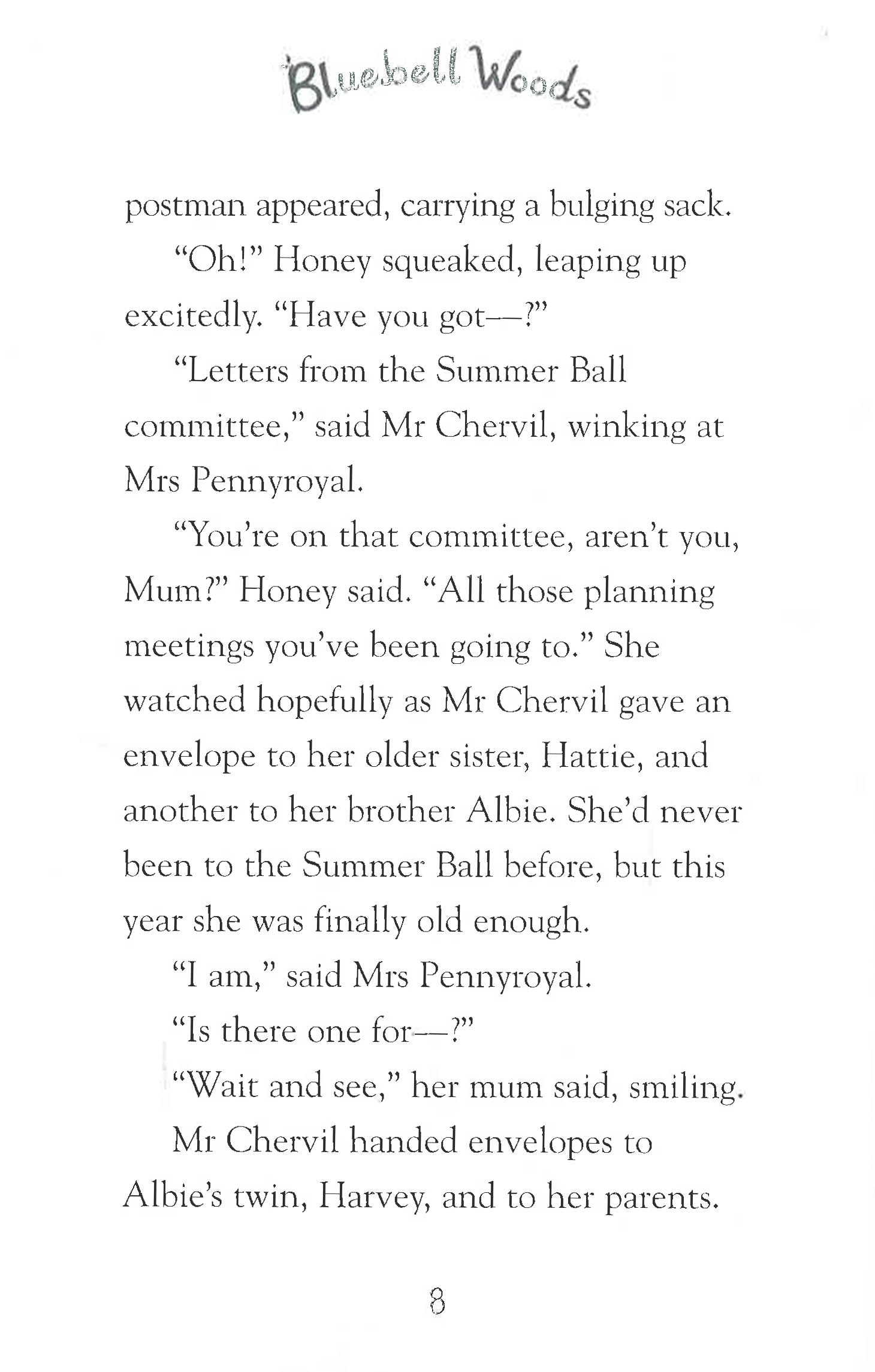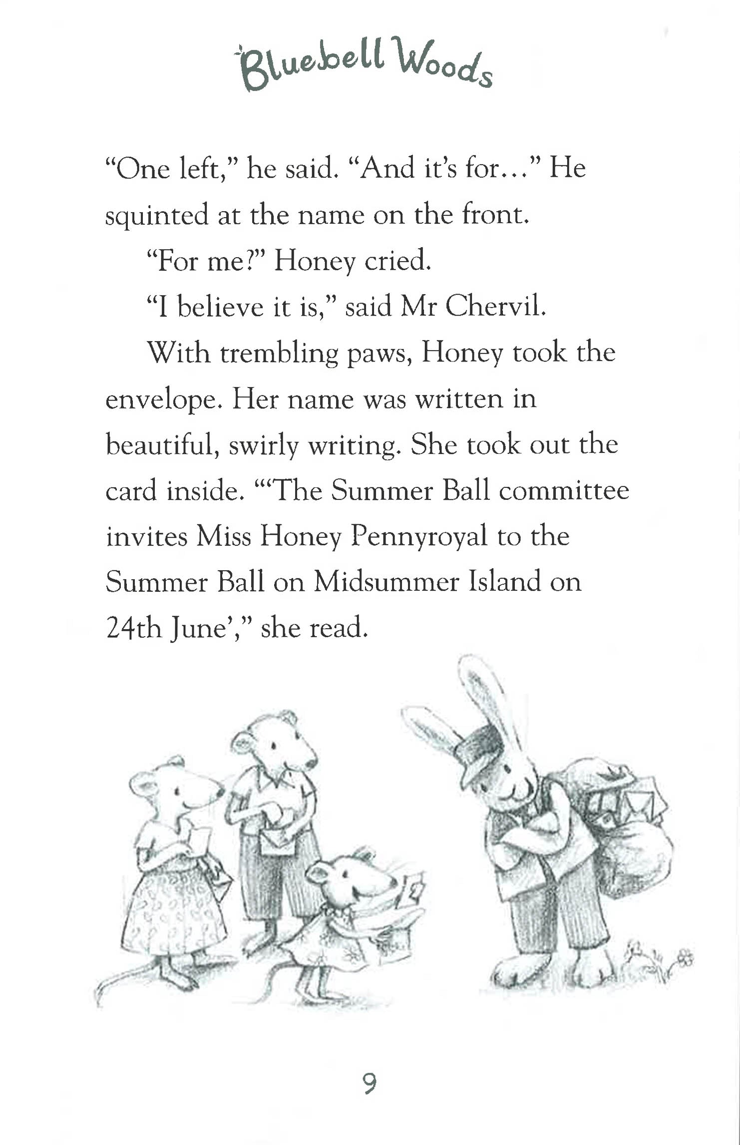Welcome to Bluebell Woods, home to a delightful cast of woodland friends. It will soon be time for the Bluebell Woods Summer Ball and everyone is preparing for the festivities. Honey the wood mouse cannot wait. This time she'll be old enough to join her big sister Hattie in the Grand Procession. But she has nothing to wear! Can Honey's friends, Florence the rabbit, Evie the squirrel and Natalie the hedgehog, help to make Honey's day truly special?