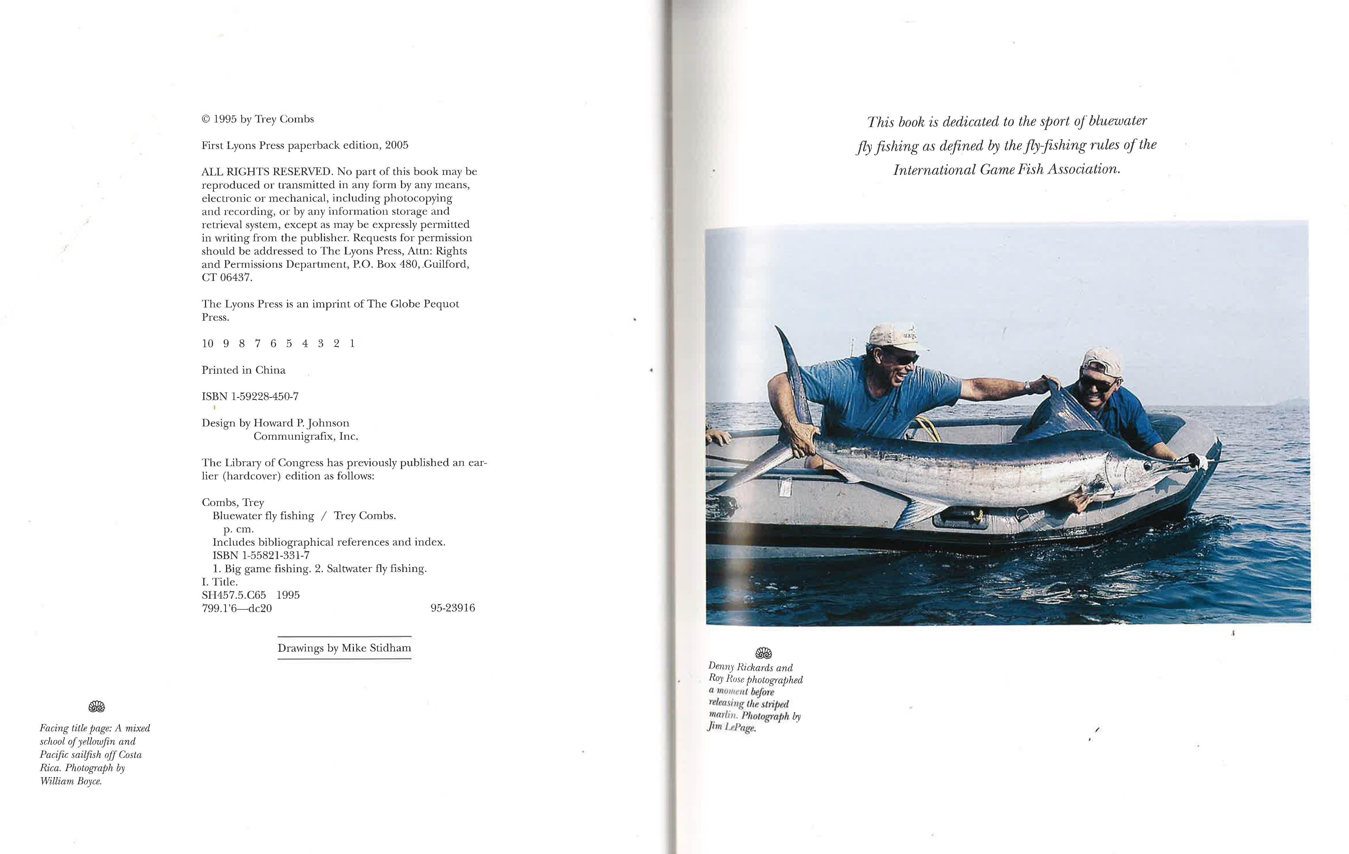 Bringing the largest pelagic gamefish in the ocean to the fly. Here is the first major book devoted exclusively to the exciting world of big-game fly-fishing. Trey Combs has found the prime destinations for seventeen different species, and each has its own chapter: Dorado's, Pacific sailfish, Atlantic sailfish, blue marlin, black marlin, striped marlin, white marlin, albacore, yellowfin tuna, bigeye tuna, blackfin tuna, kawakawa tuna, black skipjack, skipjack tuna, dogtooth tuna, wahoo, Pacific salmon, and inshore gamefish. Combs provide a short history and fly-fishing strategies for each gamefish, as well as delightful anecdotes of his own fishing experiences. The book also includes important, up-to-the-minute chapters on tackle and teasing techniques, a major section on bluewater flies and poppers, and tying advice from such experts as Lefty Kreh, Bob Popovics, Rod Harrison, Winston Moore, and many others. Combs's fine prose makes reading highly technical information easy and enjoyable. He has been where giant fish tear tackle apart and wear anglers out. No big-game angler should be without "Bluewater Fly Fishing" in their library.