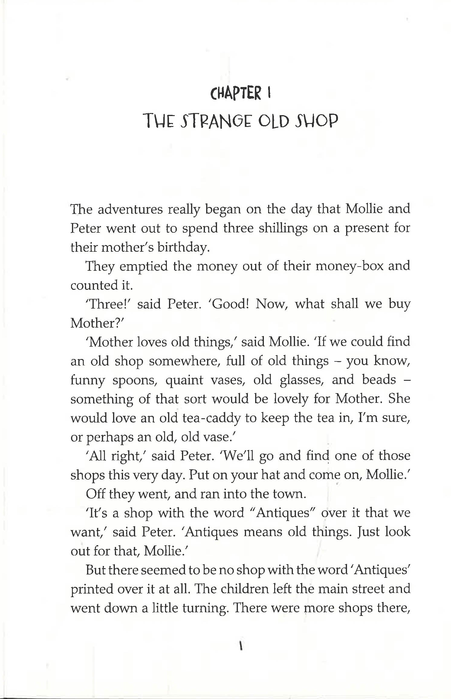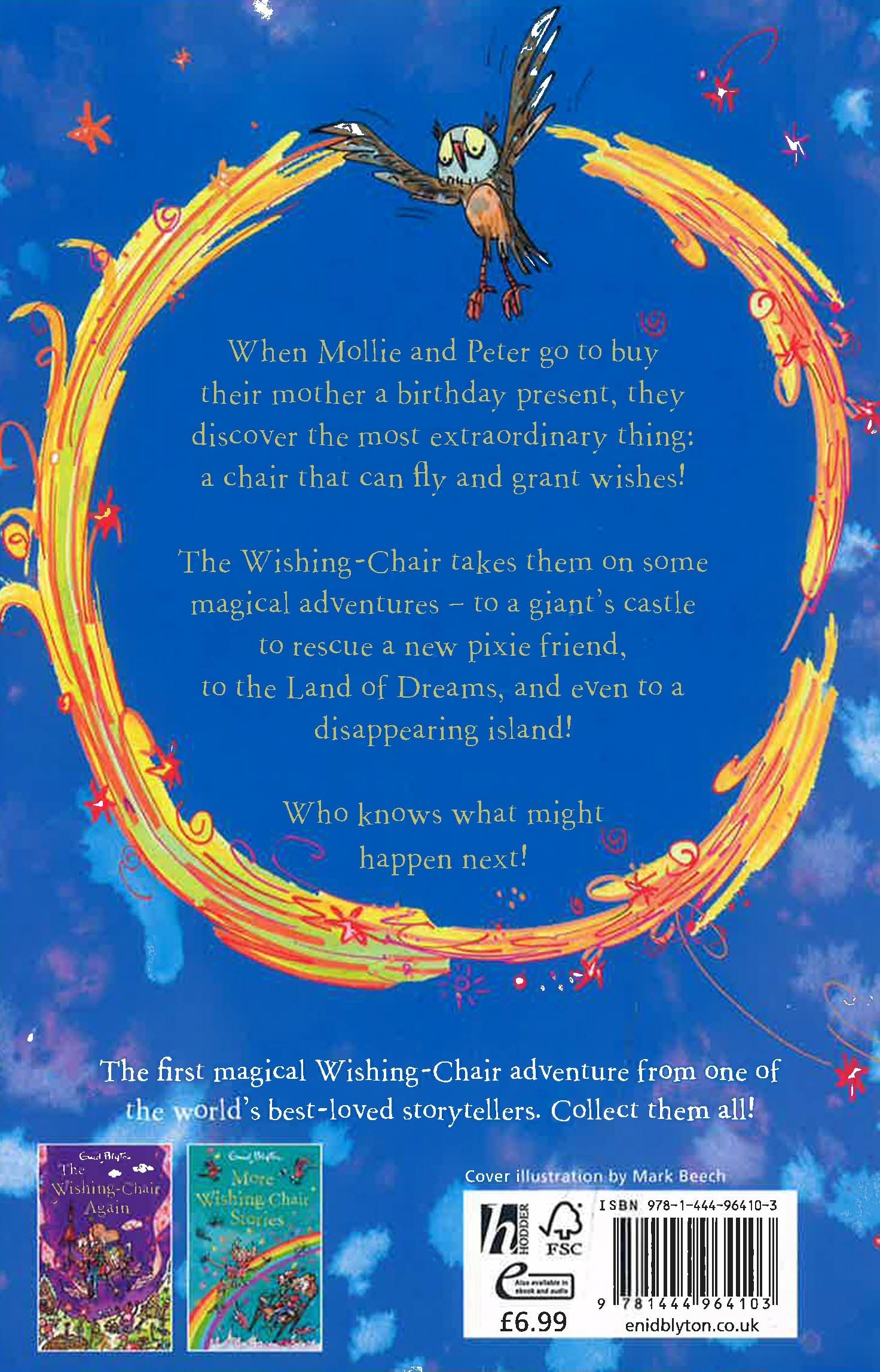 When Mollie and Peter go to buy their mother a birthday present, they discover the most extraordinary thing: a magical wishing-chair! The Wishing-Chair takes them on some wonderful adventures - to a giant's castle to rescue a new pixie friend, to the Land of Dreams, and even to a disappearing island! Who knows what might happen next?